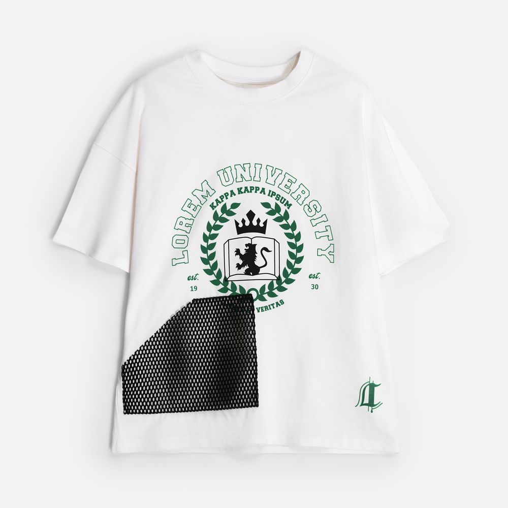 Крупная тканевая сетка Rete — это вызов стандартам. Она сразу заявляет о себе — просвечивающая и смелая. Такой материал невозможно не заметить: он придает изделию объем, брутальность и футуристичную эстетику.