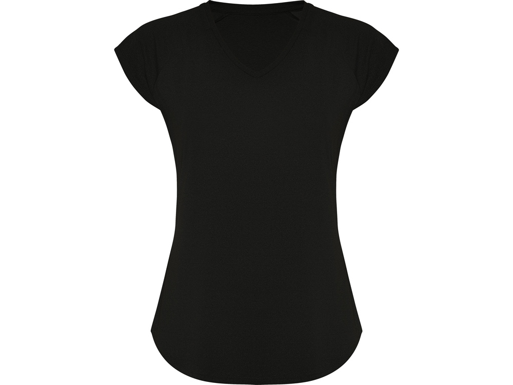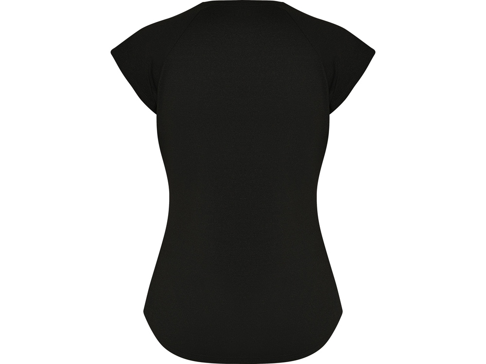 Спортивная женская футболка с коротким рукавом реглан. Вырез горловины V. Полотно из полиэстера на ощупь напоминающее хлопок. Приталенный силуэт.