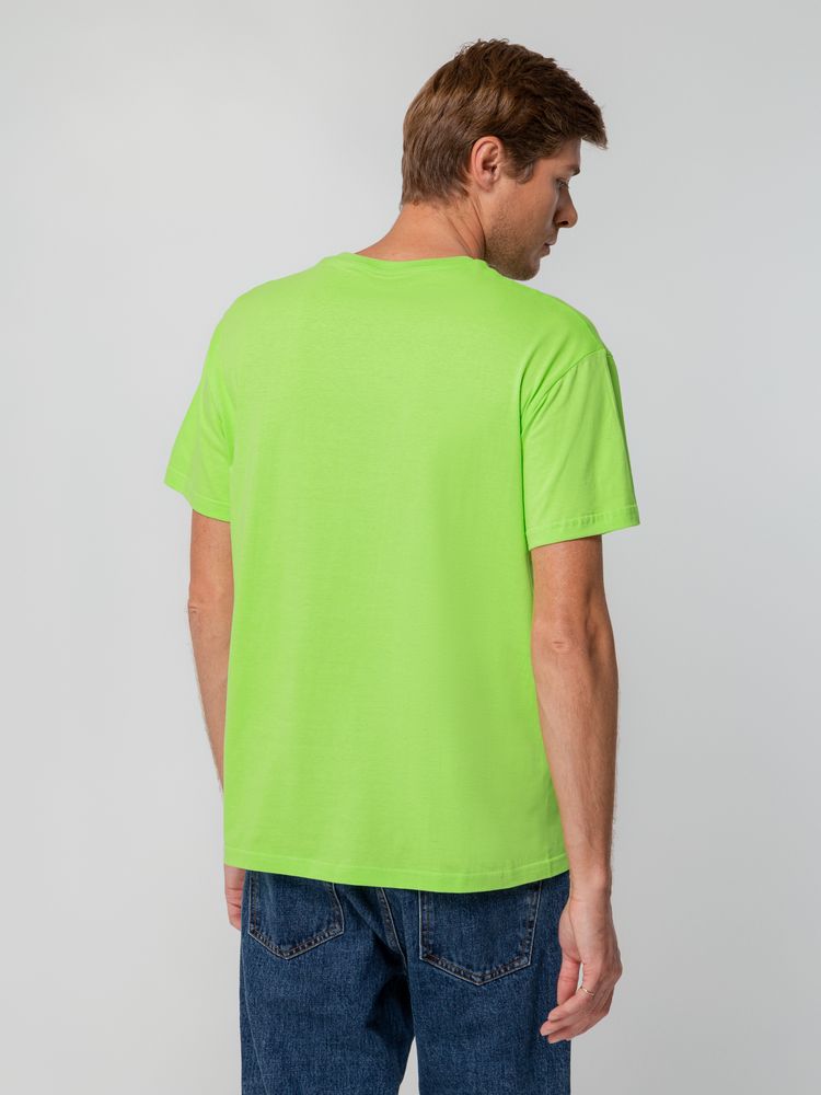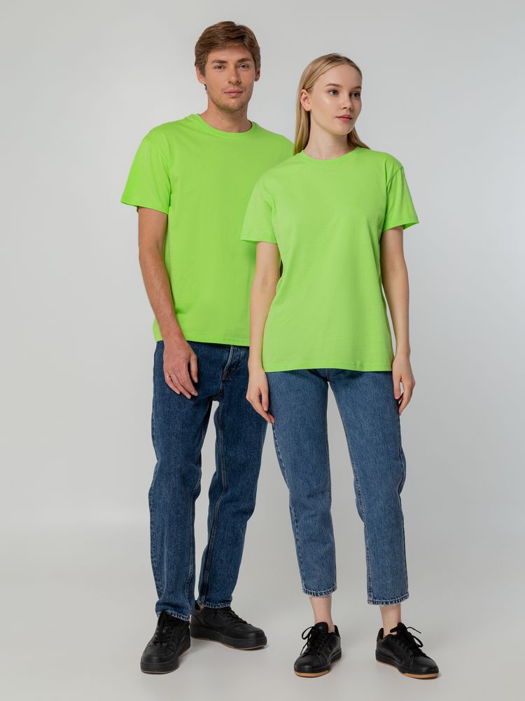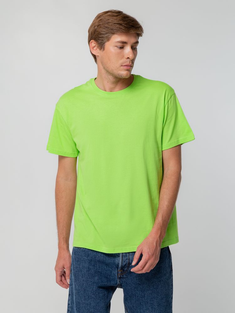 Футболка унисекс прямого силуэта без боковых швов (размеры S–4XL) или с боковыми швами (размер 5XL). Активное крашение полотна — изделие сохраняет цвет надолго.