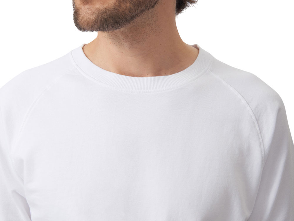 Футболка выполнена из хлопкового френч терри с петельками на изнаночной стороне. Горловина обработана рибом 2х2 и дополнительно усилена тесьмой-елочкой с внутренней стороны спинки и дополнена кокеткой по спинке для нанесения логотипа клиента. Рукав реглан продублирован рибом по низу. Разрезы в боковых швах. Гладкая поверхность полотна позволяет идеально нанести изображение. Футболка комфортного силуэта.