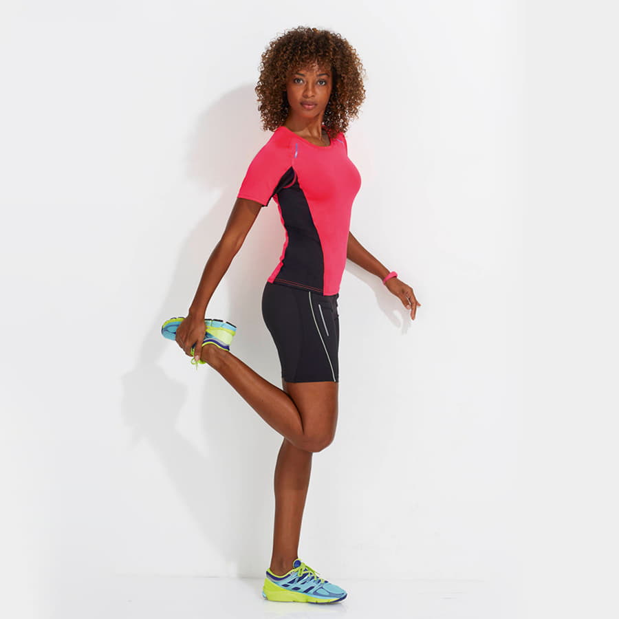 Контрастная женская футболка SYDNEY WOMAN с короткими рукавами реглан и круглым воротом специально предназначена для бега и активных занятий спортом.