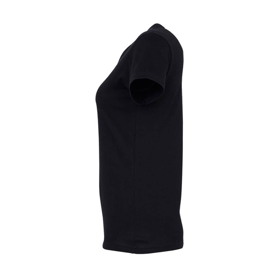 Футболка имеет фасонные (фигурные) боковые швы для более женственной и изящной посадки.