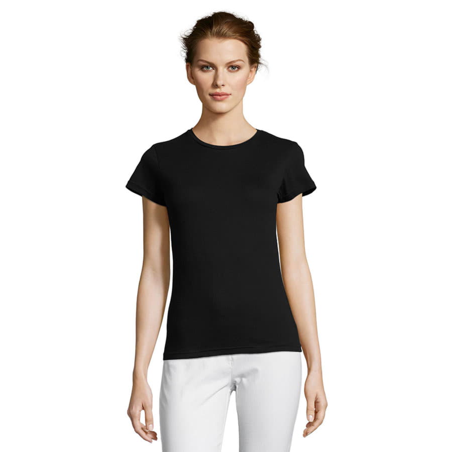 Miss — это базовая, комфортная и недорогая классическая футболка с фасонными (фигурными) швами для более женственной посадки из мягкого хлопкового полотна. Мягкость достигается за счет тонкой, но прочной пряжи, обеспечивающей приятные тактильные ощущения при носке.