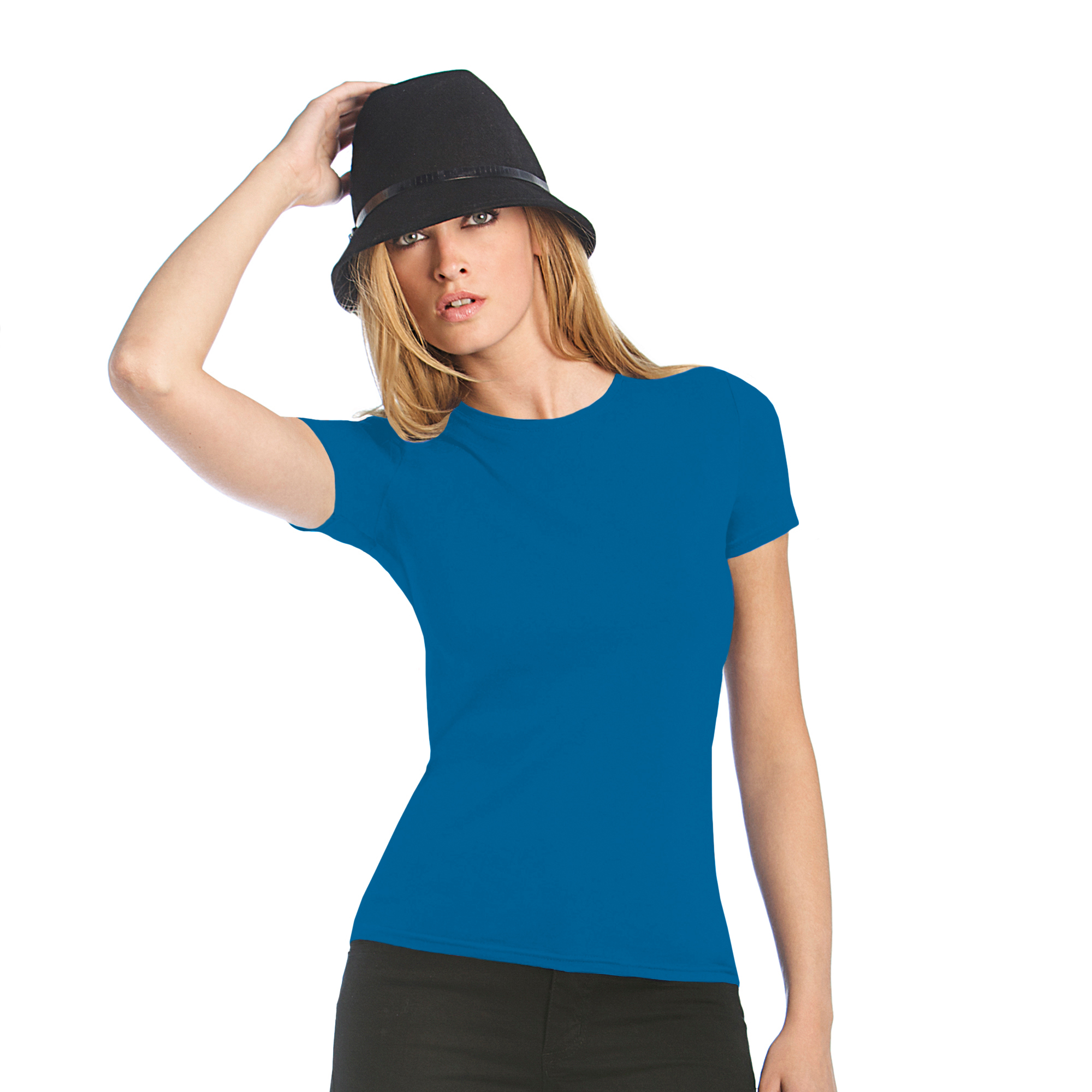 Футболка женская, приталенная, с боковыми швами, плотностью 145 г/кв.м.; тонкая линия воротника.