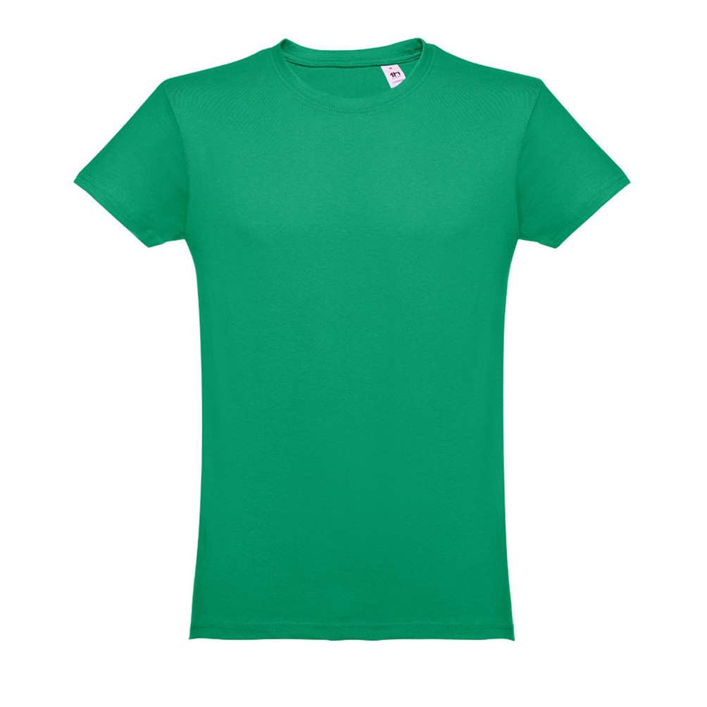 Мужская трикотажная футболка из 100% хлопка (150 г/м²), трубчатого формата. Цвет 83: 90% хлопок/10% вискоза. Воротник в резинку 1x1 с усиливающей лентой джерси. Двойной шов на рукавах и нижней части изделия.