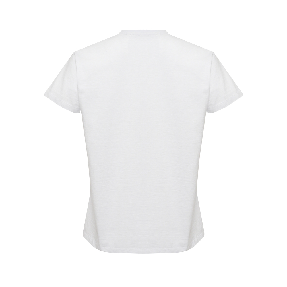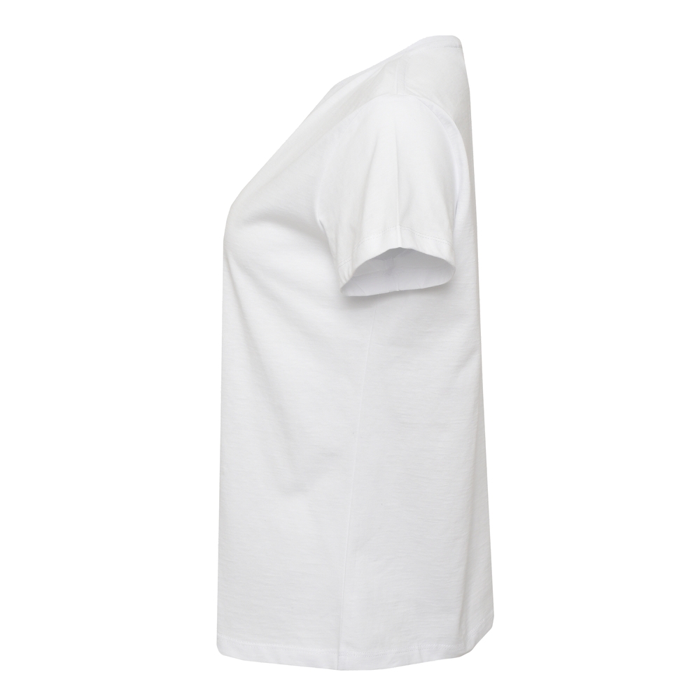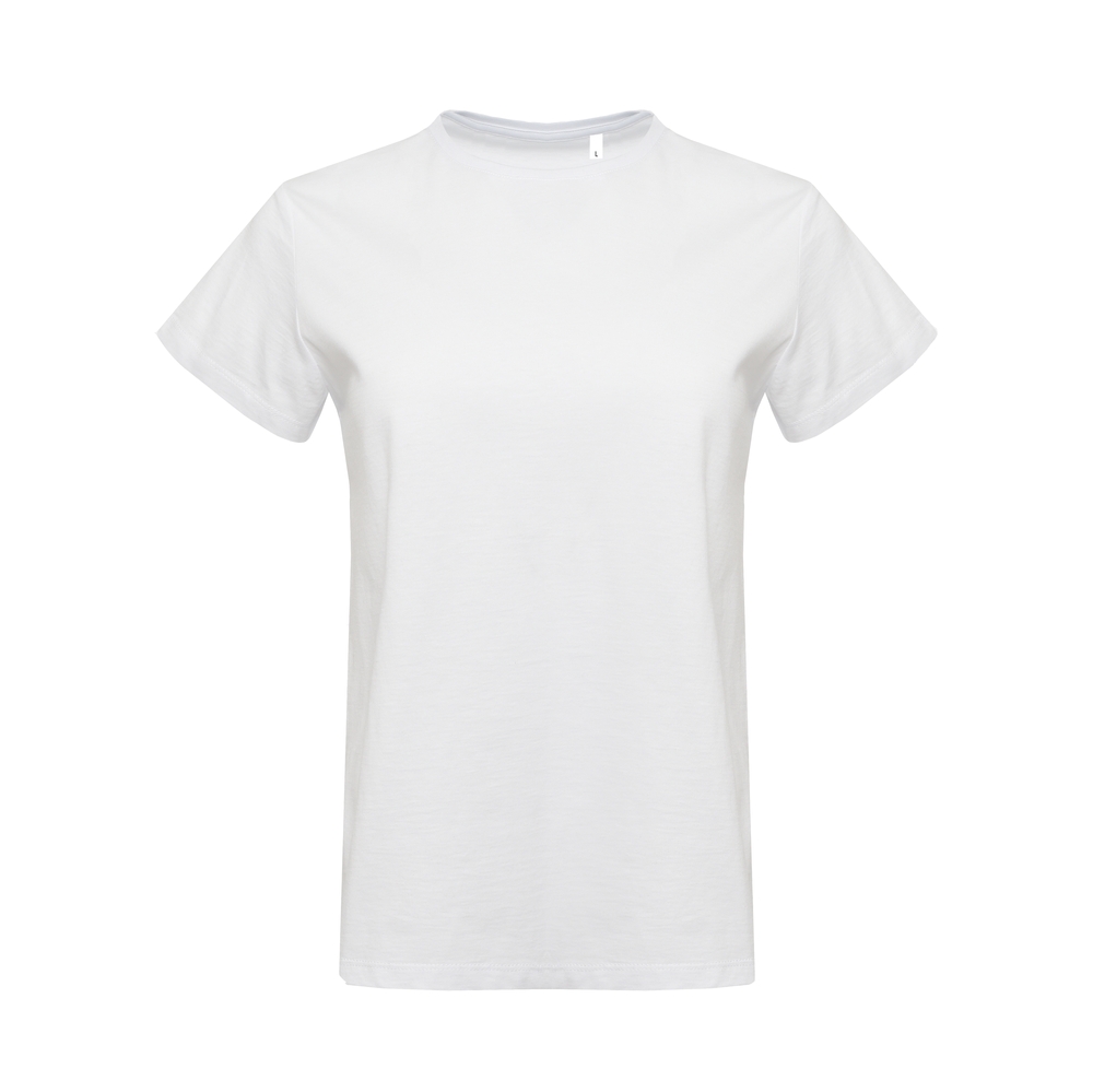 Чуть приталенный силуэт — более прямой, чем у классической Женской футболки Премиум, плотностью 160 г/м2.