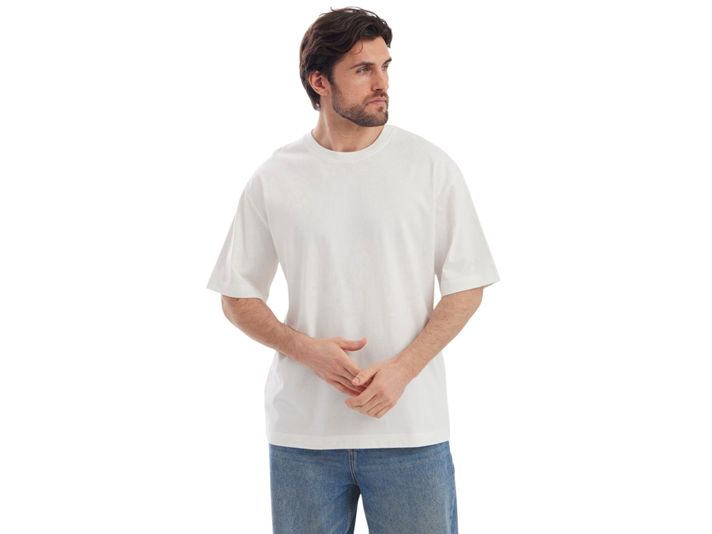 Футболка из 100% хлопкового полотна плотностью 180 г/м² — оптимальный баланс между комфортом, внешним видом и износостойкостью. Отделка пич-начёс придаёт ткани мягкую, бархатистую текстуру и благородный матовый эффект, делая изделие особенно приятным к телу.