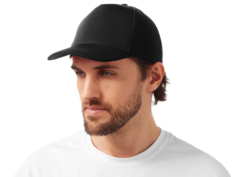 Универсальная 5 панельная бейсболка из структурной ткани, регулировка объема с помощью липучки сзади.