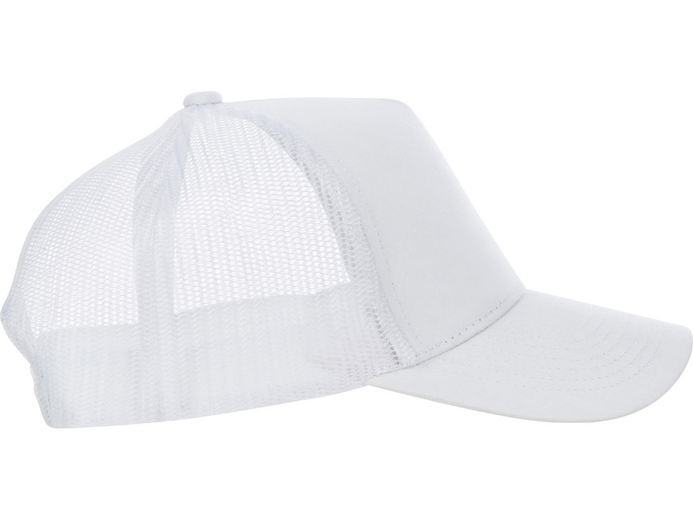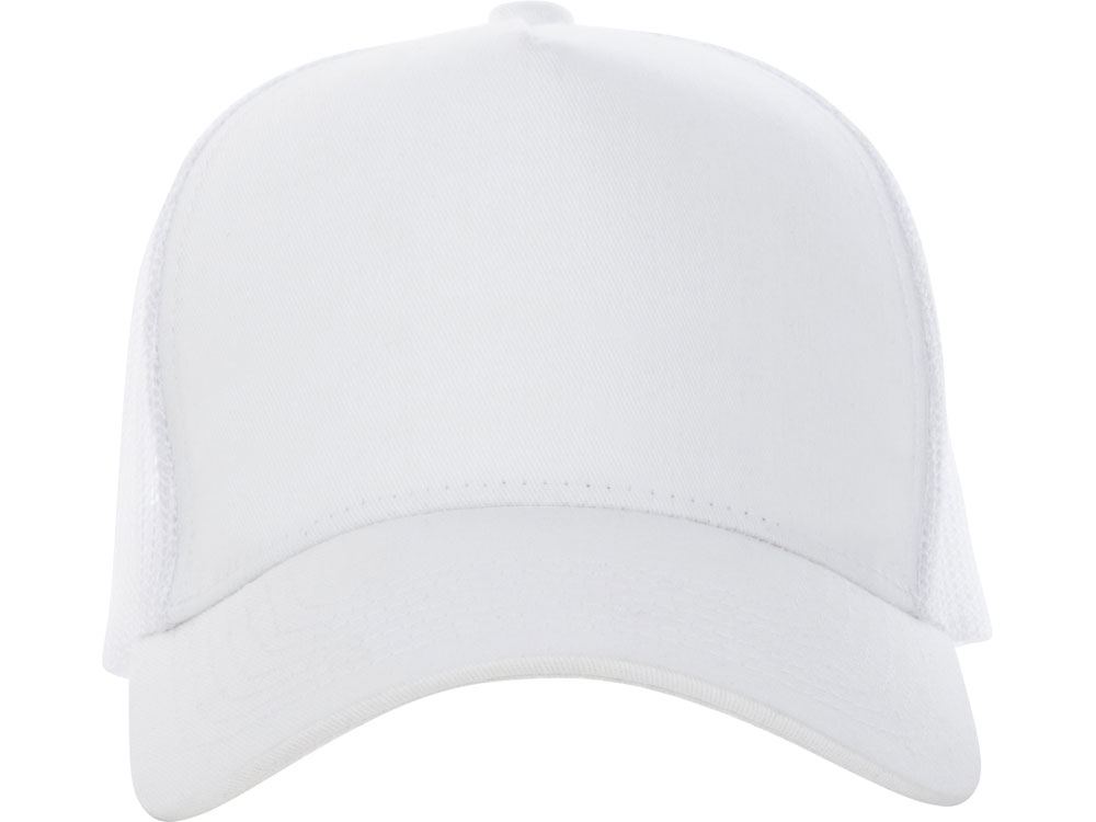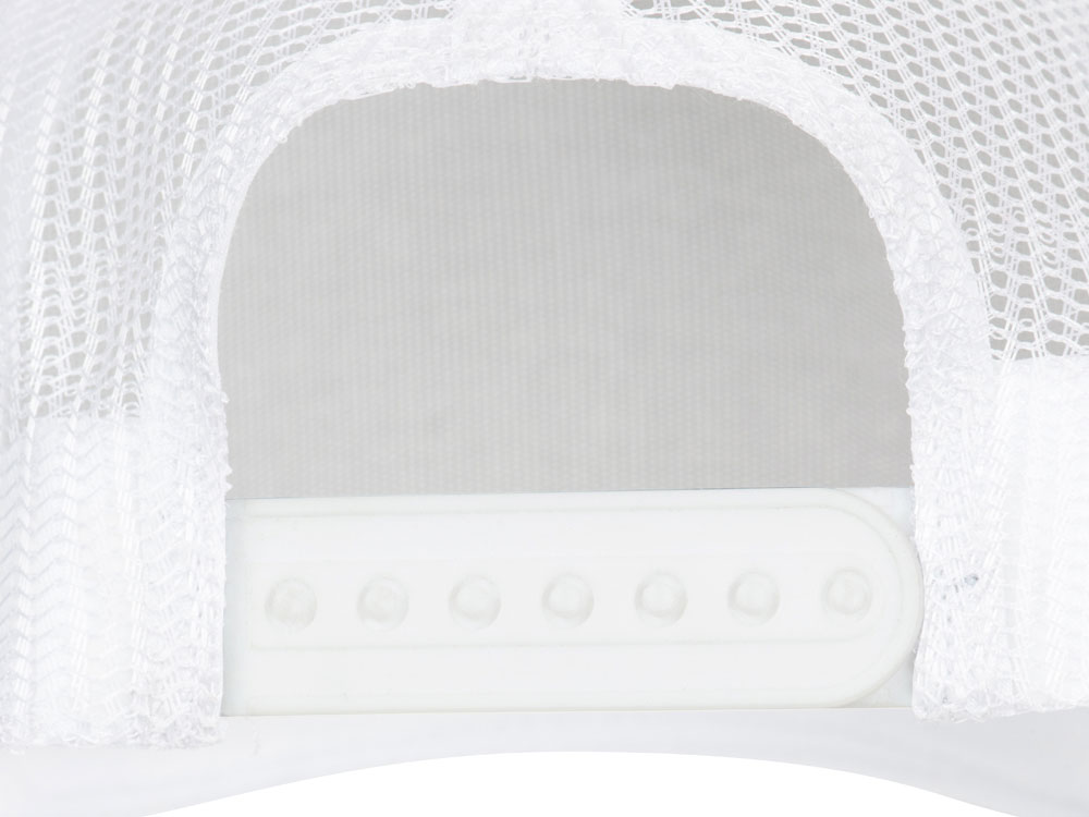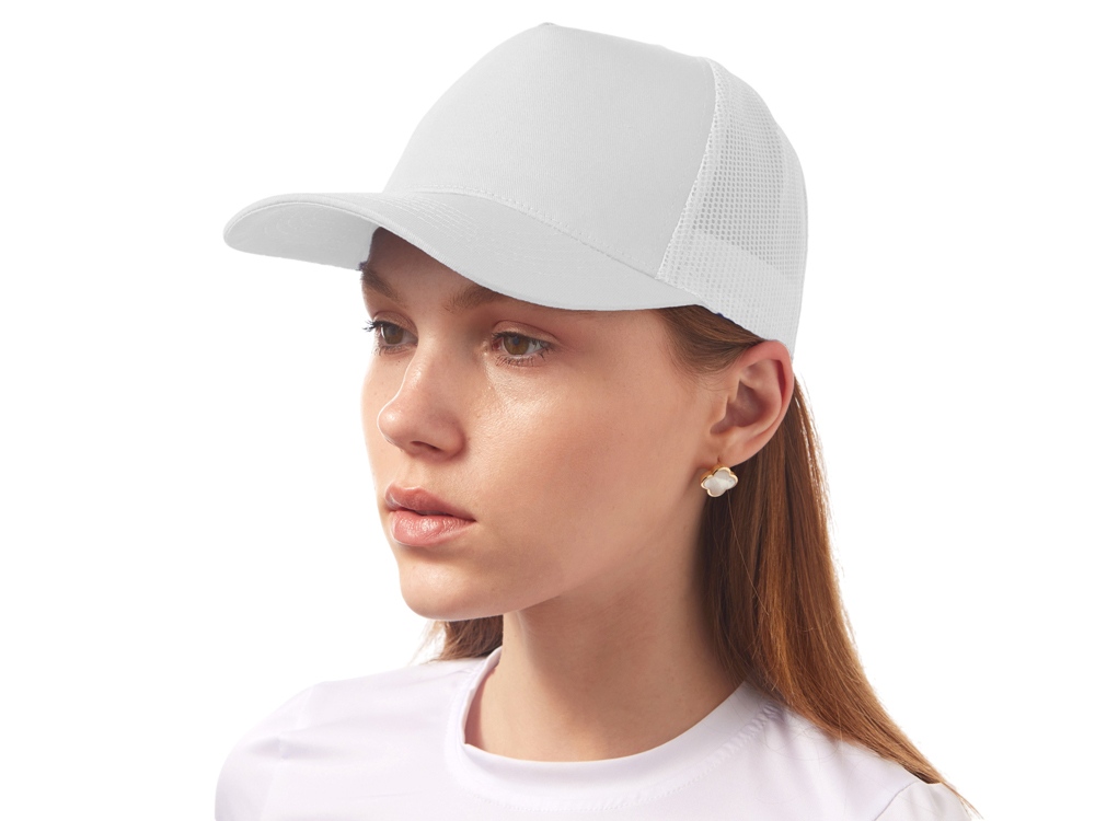 Пяти панельная бейсболка с передней частью из хлопка для комфорта головы и лба. Задняя часть из пластиковой сетки, которая отвечает за циркуляцию воздуха и обеспечивает изделию износостойкость. Для подгонки по размеру головы — пластиковая застежка.