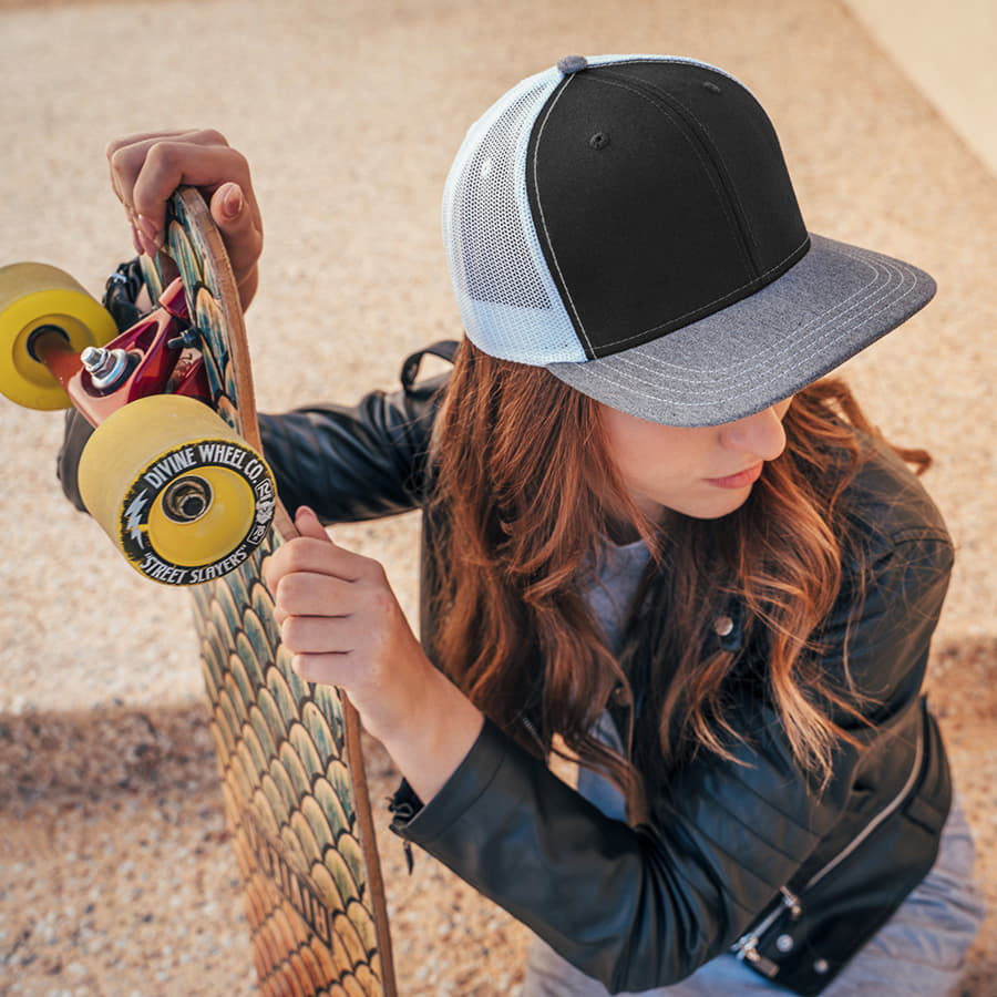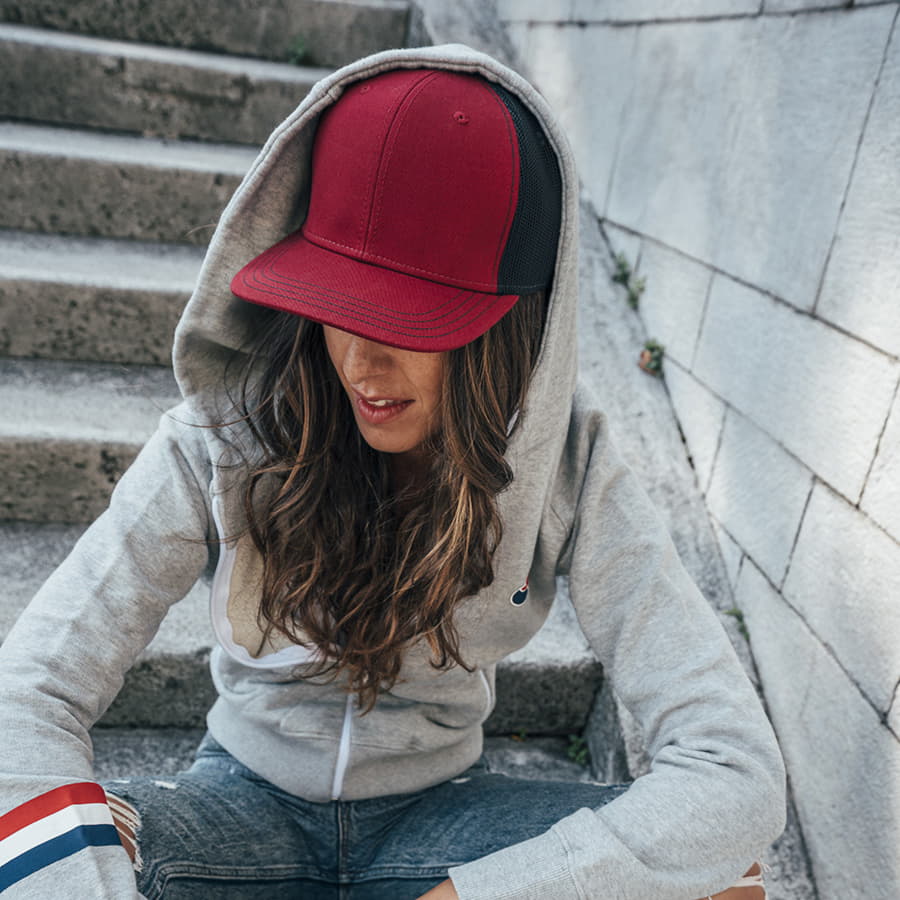 Контрастные строчки на козырьке и передних клиньях добавляют нотку уличного стиля, создавая повседневный и молодежный образ.