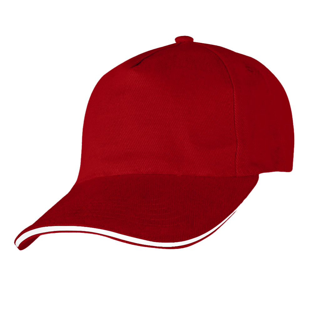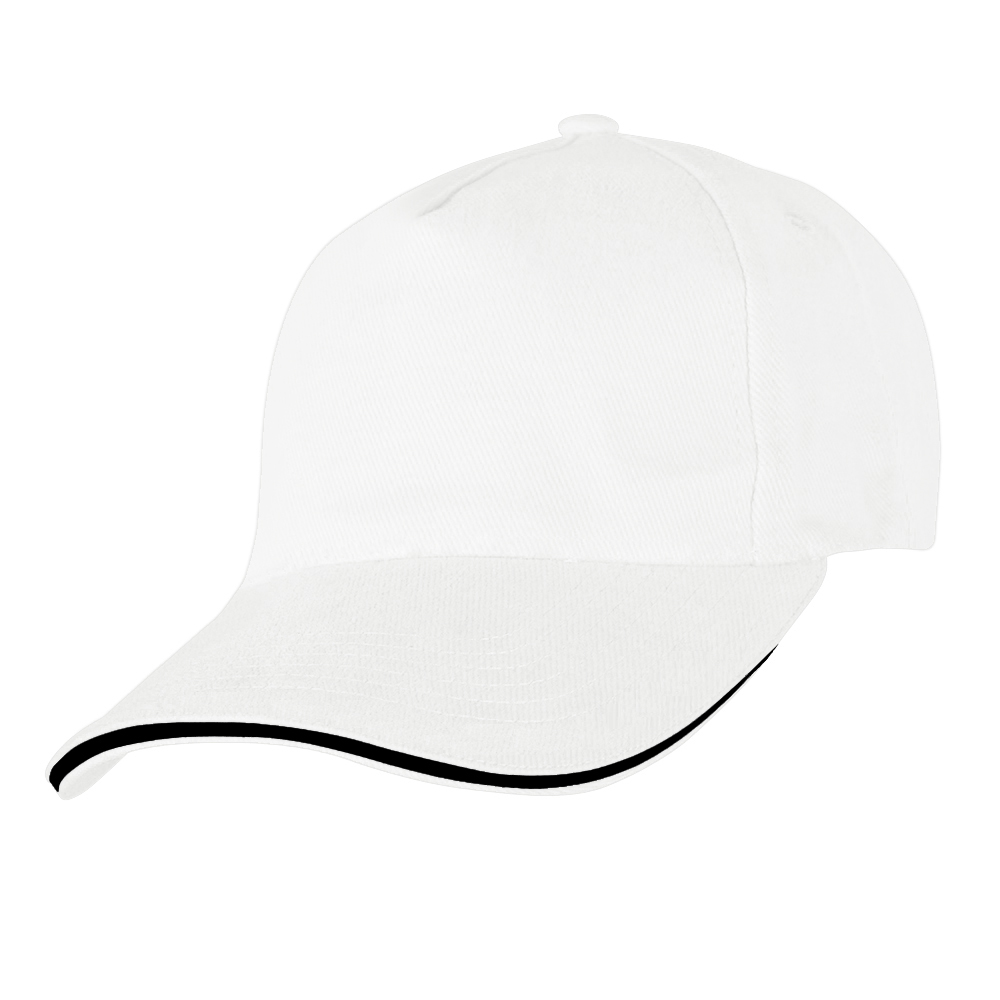 Флагманская модель — плотная бейсболка-сэндвич с контрастным кантом в козырьке.