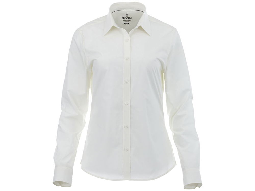 Женская рубашка с длинными рукавами Hamell. манжет на одной пуговице. Атласная окантовка внутренней части горловины. Швы моделирующие фигуру и приталенный крой. Гравированные пуговицы в цвет изделия. Комфортный ярлык-трансфер на изделии. Поплин из 96% хлопка и 4% эластана. 118 г/м².