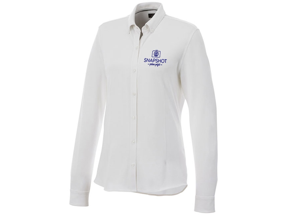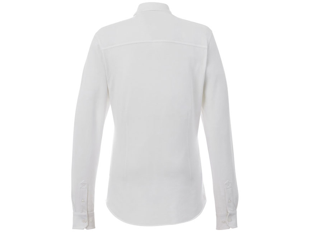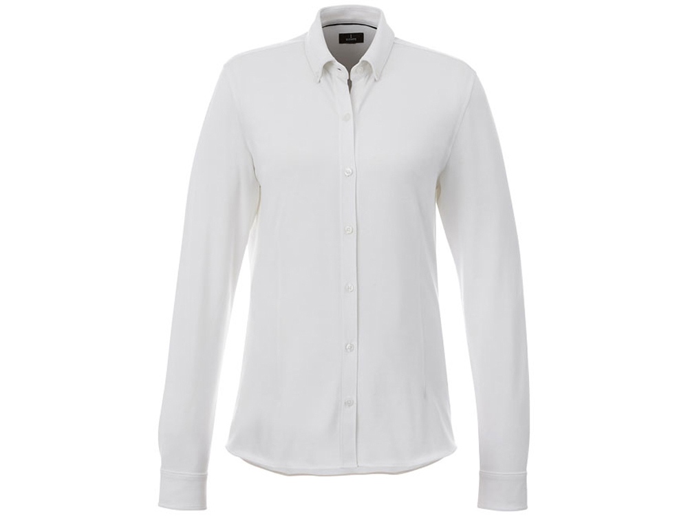 Женская рубашка Bigelow из пике с длинным рукавом. Воротник из ткани изделия. Стрейтч-ткань. Регулируемый манжет на одной пуговице. Воротник на пуговицах. Швы моделирующие фигуру и приталенный крой. Атласная окантовка внутренней части горловины. Гравированные пуговицы в цвет изделия. Тканая метка. Двойное трикотажное пике, 95% хлопок и 5% эластан. 200 г/м².