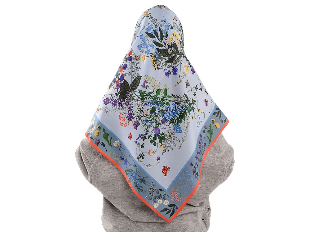 Яркое благоухающее разноцветье русского полевого букета воплощено в шелковом платке, где собраны изображения более 20 цветов и трав.