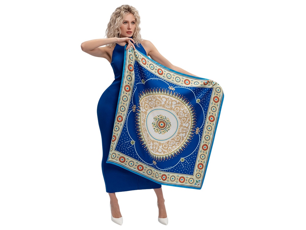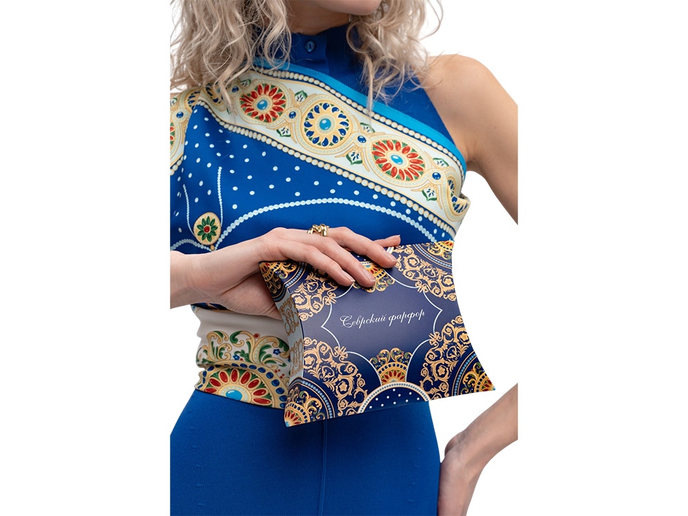 Платок Севрский фарфор создан брендом Русские в моде совместно с Музеем-заповедником Павловск и вдохновлен бесценным шедевром из исторической коллекции Павловского дворца – Севрским фарфоровым сервизом.