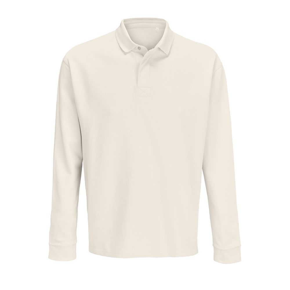 Рубашка поло из футера с длинным рукавом и спущенным плечом.