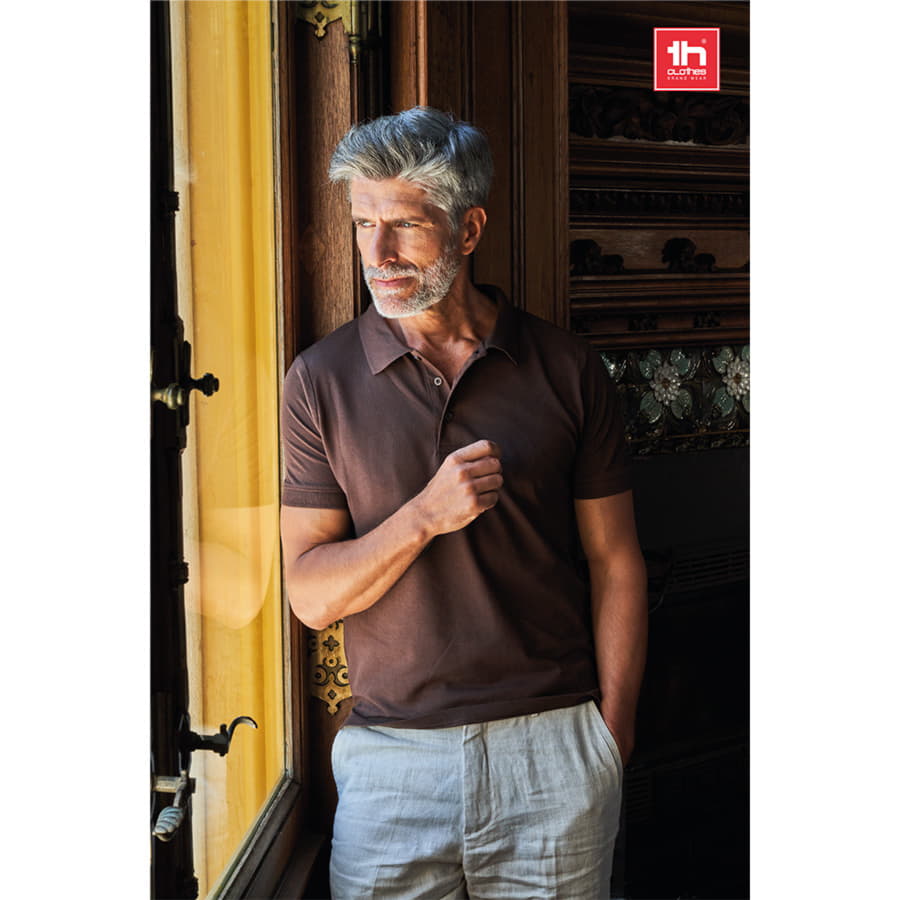 Мужская рубашка-поло из 100% кардного хлопка-пике. Полотно футболки упругое и гладкое благодаря обработке ферментами "enzyme wash" и сохраняет форму при стирке. Модель полуприлегающего силуэта. Благодаря манжете из риба 1х1 рукав смотрится очень аккуратно. Воротник также выполнен из риба 1х1, внутри ворота - укрепляющая тесьма по горловине. Планка с 3 пуговицами в тон изделия. запасная пуговица на ярлыке во внутреннем боковом шве. Боковые разрезы.