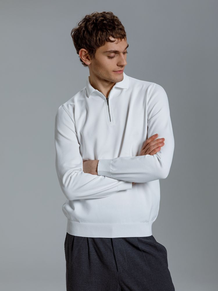 Мужская рубашка поло с длинным рукавом прямого силуэта.
