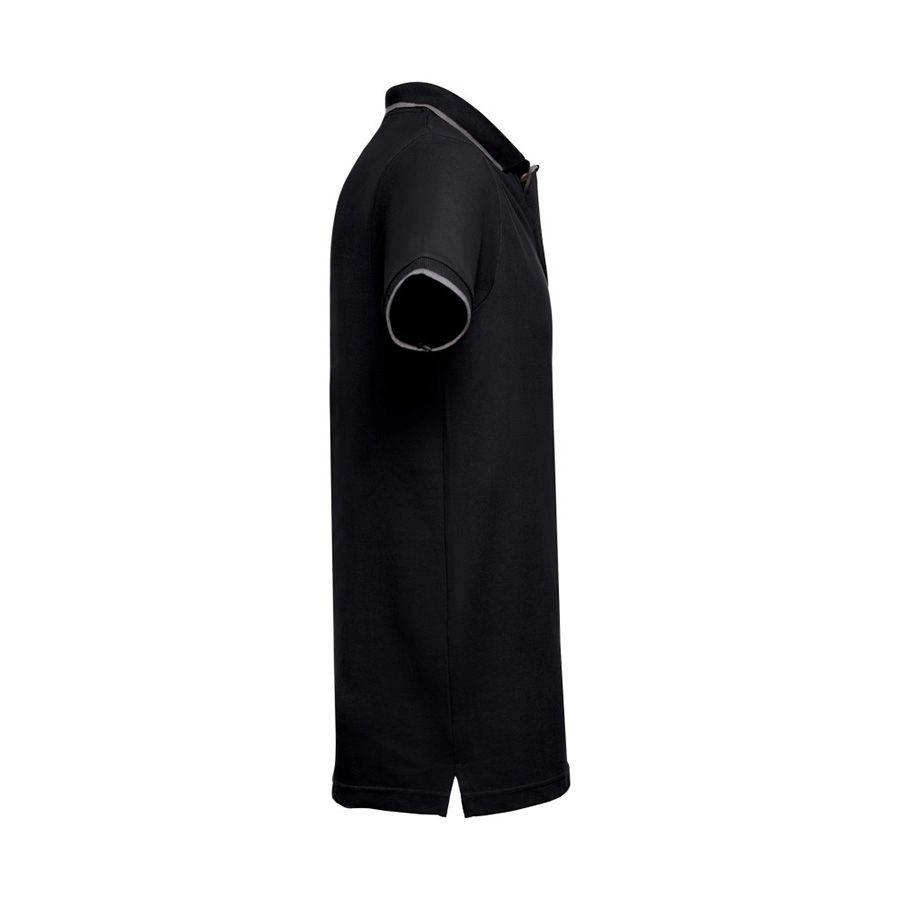 Мужская рубашка-поло из хлопковой ткани-пике. Полотно футболки упругое и гладкое благодаря обработке ферментами "enzyme wash" и сохраняет форму при стирке. Модель полуприлегающего силуэта. Благодаря манжете из риба 1х1 рукав смотрится очень аккуратно. Воротник также выполнен из риба 1х1, внутри ворота - укрепляющая тесьма по горловине. Манжета на рукавах и край воротника выполнены контрастным цветом. Планка с 3 контрастными пуговицами. Запасная пуговица на ярлыке во внутреннем боковом шве.