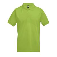 Мужское поло. Трикотаж пике 100% хлопок: 195 г/м². Манжеты и воротник на резинке. Укрепляющая лента на воротнике и планка c 3 пуговицами в тон. Нижняя часть с разрезами. Запасная пуговица на внутреннем шве. Завернутый шов внизу