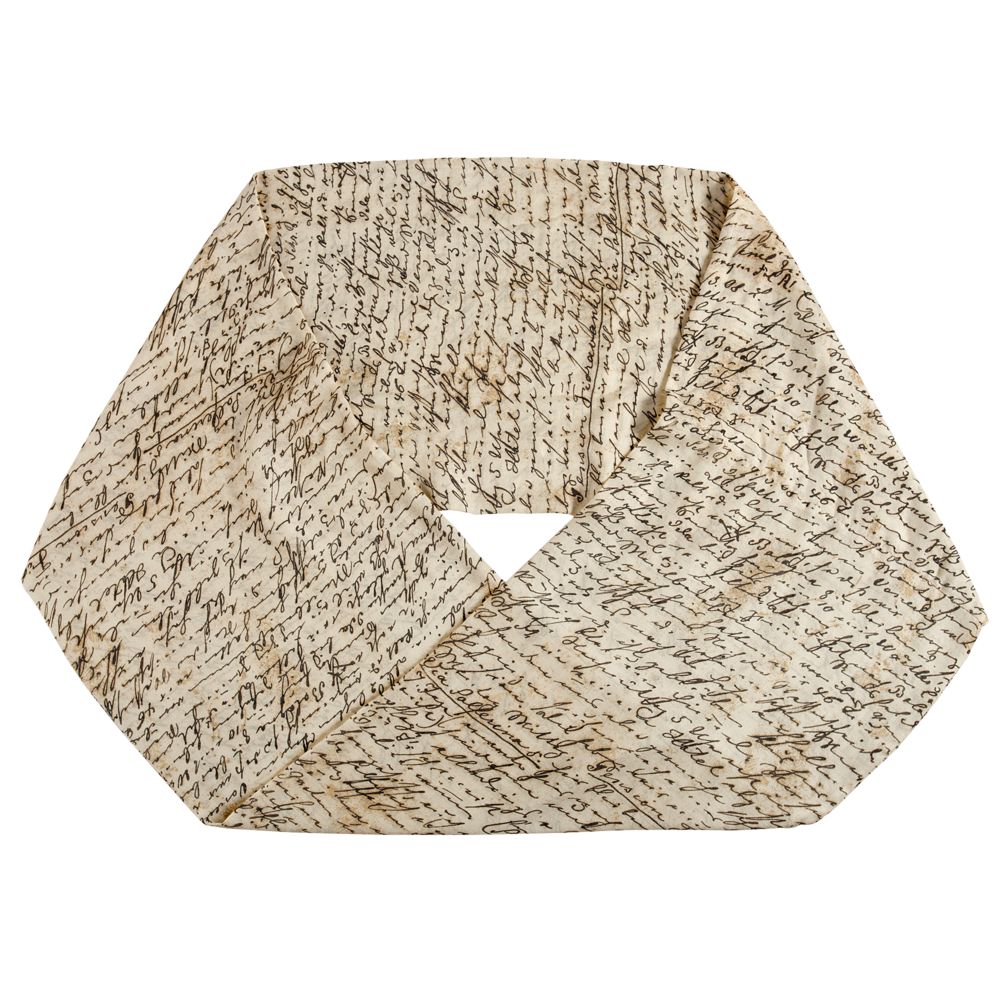 Шарф-снуд сшит по принципу ленты Мебиуса: перекрученное замкнутое кольцо. Именно поэтому он ложится на плечи красивыми складками.