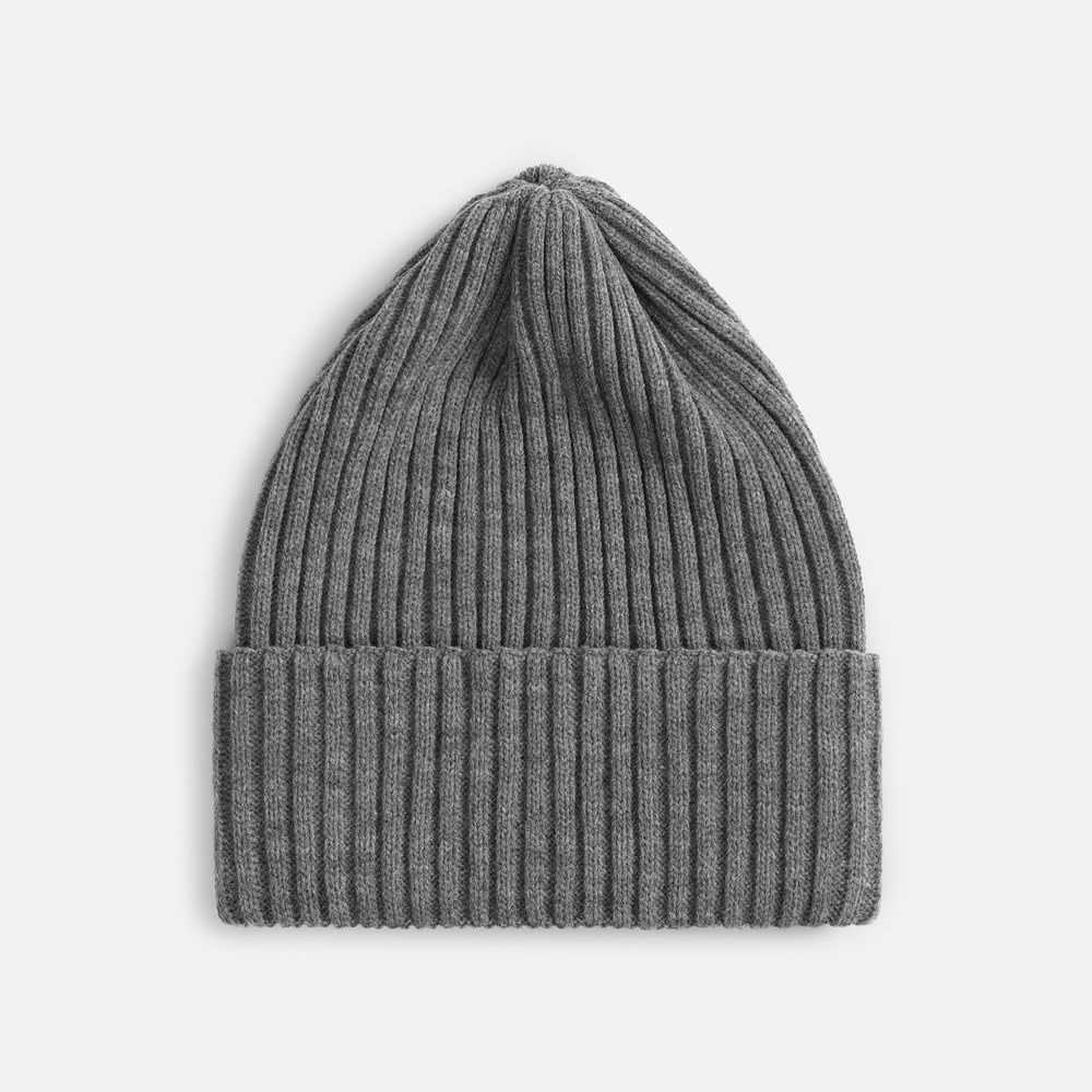 Однослойная шапка фактурной вязки с двойным отворотом.