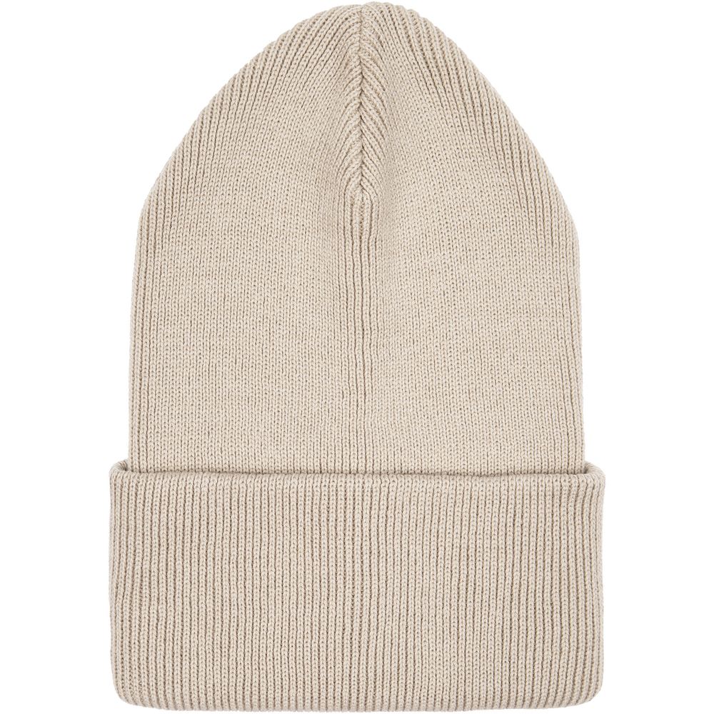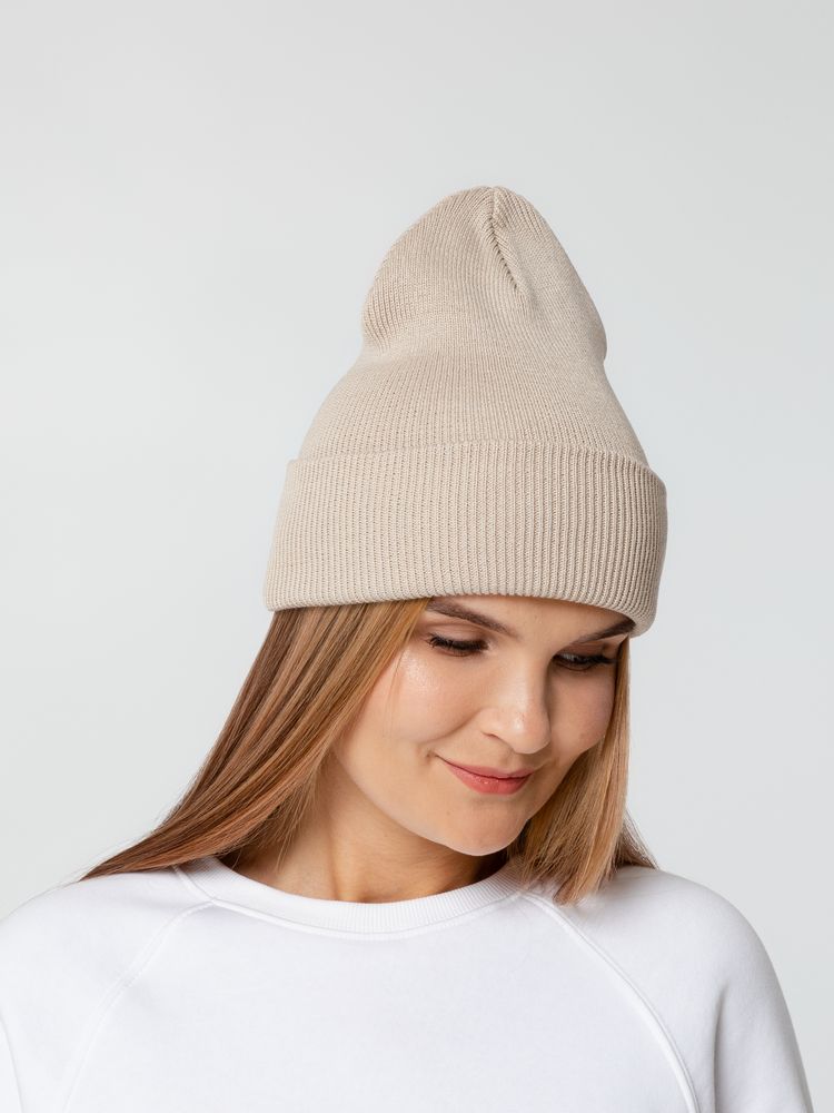 Двухслойная шапка, связанная резинкой, с широким отворотом.