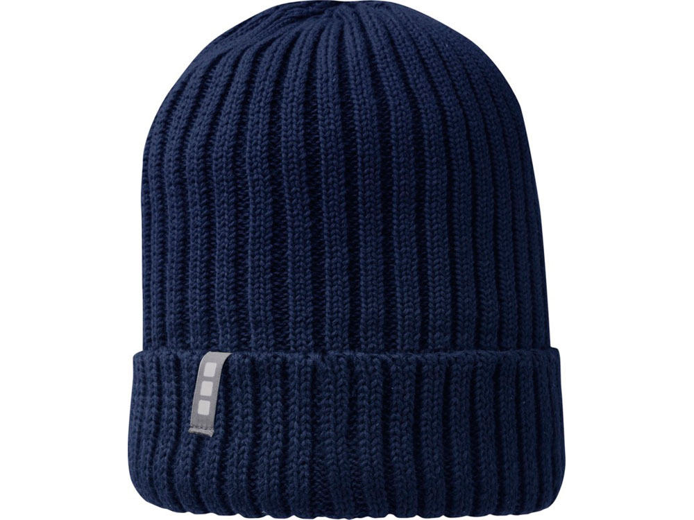 Однослойная шапка с двойным отворотом связана рибом 2х2 7 класса из 100% органического хлопка. Фирменная этикетка в виде петли.