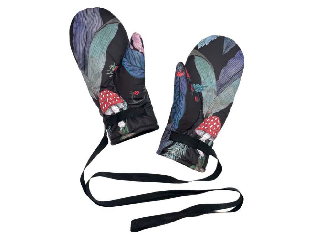 Верхняя ткань выполнена из непромокаемой курточной ткани, внутри флисовый подклад и утеплитель - холлофайбер. Температурный режим до -20 градусов. Варежки на ленте, как в детстве.