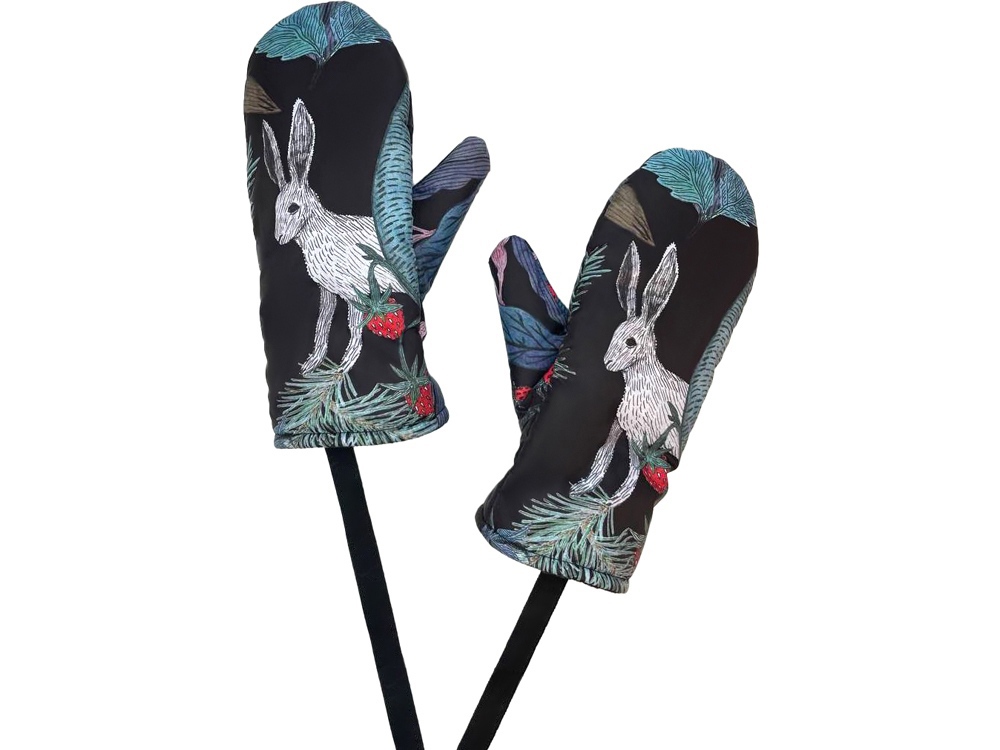 Авторский принт написан художницей вручную специально для российского бренда Varvara. Художница размышляла на тему русской природы, культуры и искусства - тут и лесная земляника, и сочная зелень, и конечно, сказочные зайцы - как будто только что сошли с полотен В. Васнецова.