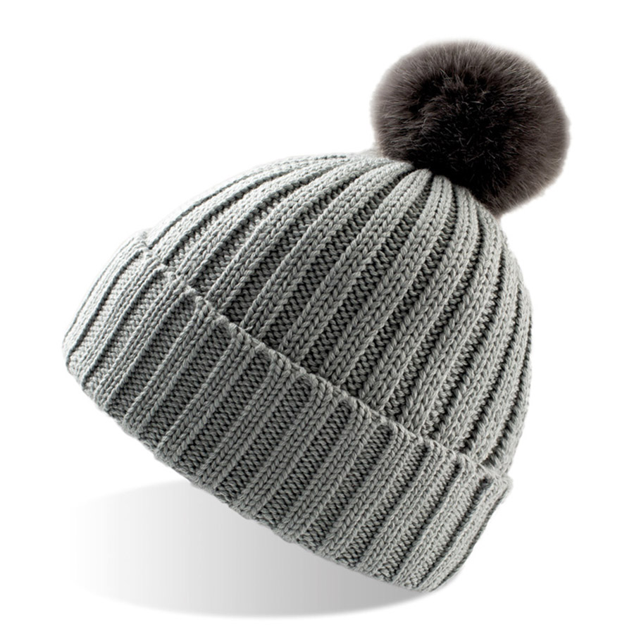 Стильный пушистый помпон выполнен из искусственного меха. По краю изделия проложена эластичная резинка для сохранения формы и комфортного прилегания.