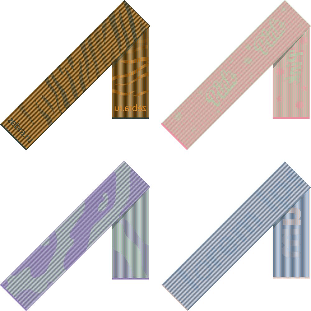 Изнаночная сторона: рисунок читается с обеих сторон шарфа, но на обратной стороне происходит инверсия цвета — текст оказывается в зеркальном отражении.
