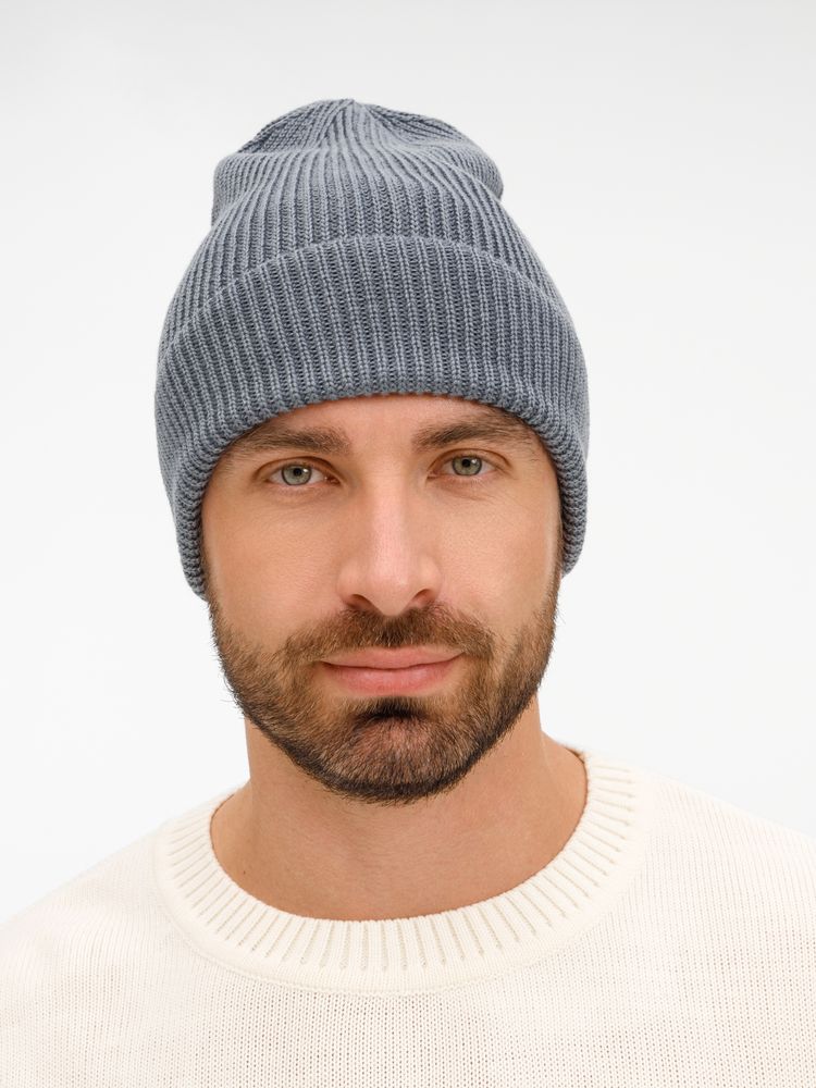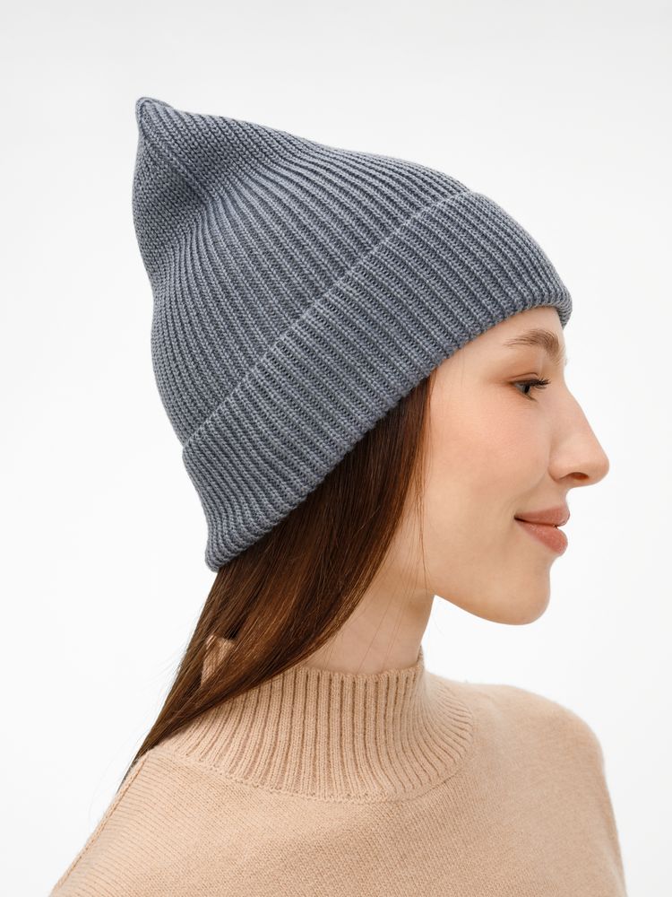 Удлиненный силуэт шапки Nobilis Mono из мягкой полушерстяной пряжи с широким отворотом создает стильный современный образ, а фактурная вязка добавляет объем и выразительность.