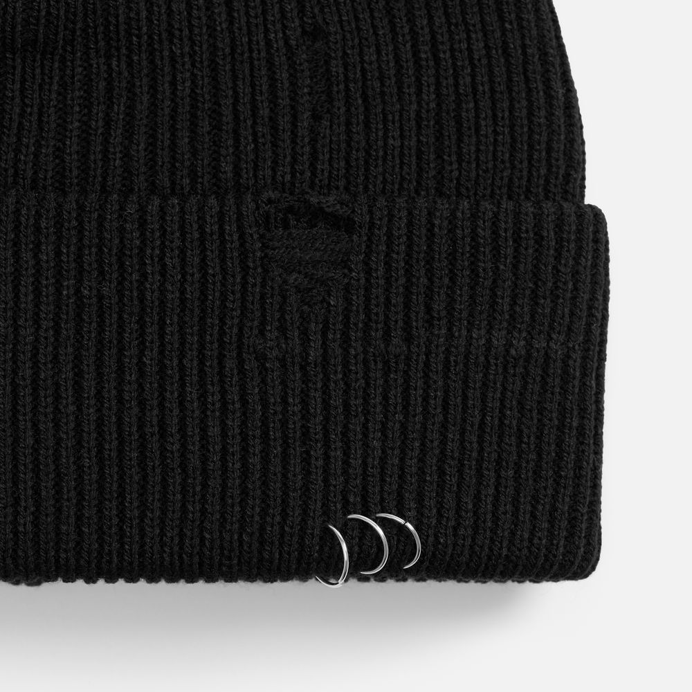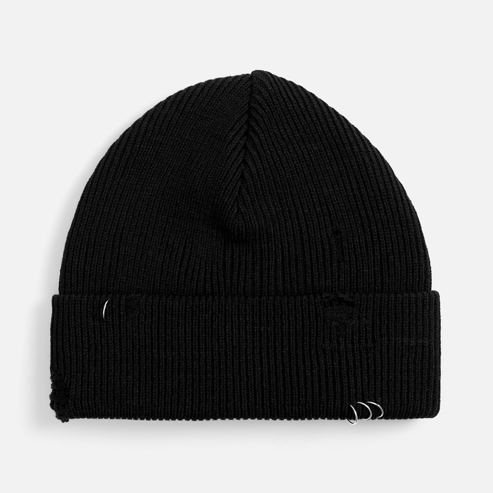 Шапка Ribelle — это практичная двухслойная модель из акрила, которая сочетает в себе уют с трендовым дерзким дизайном. Ее регулируемый отворот с рваным краем и металлическими кольцами в качестве украшений создает выразительный и необычный акцент. Благодаря универсальности и продуманной конструкции она станет стильным и функциональным дополнением гардероба.