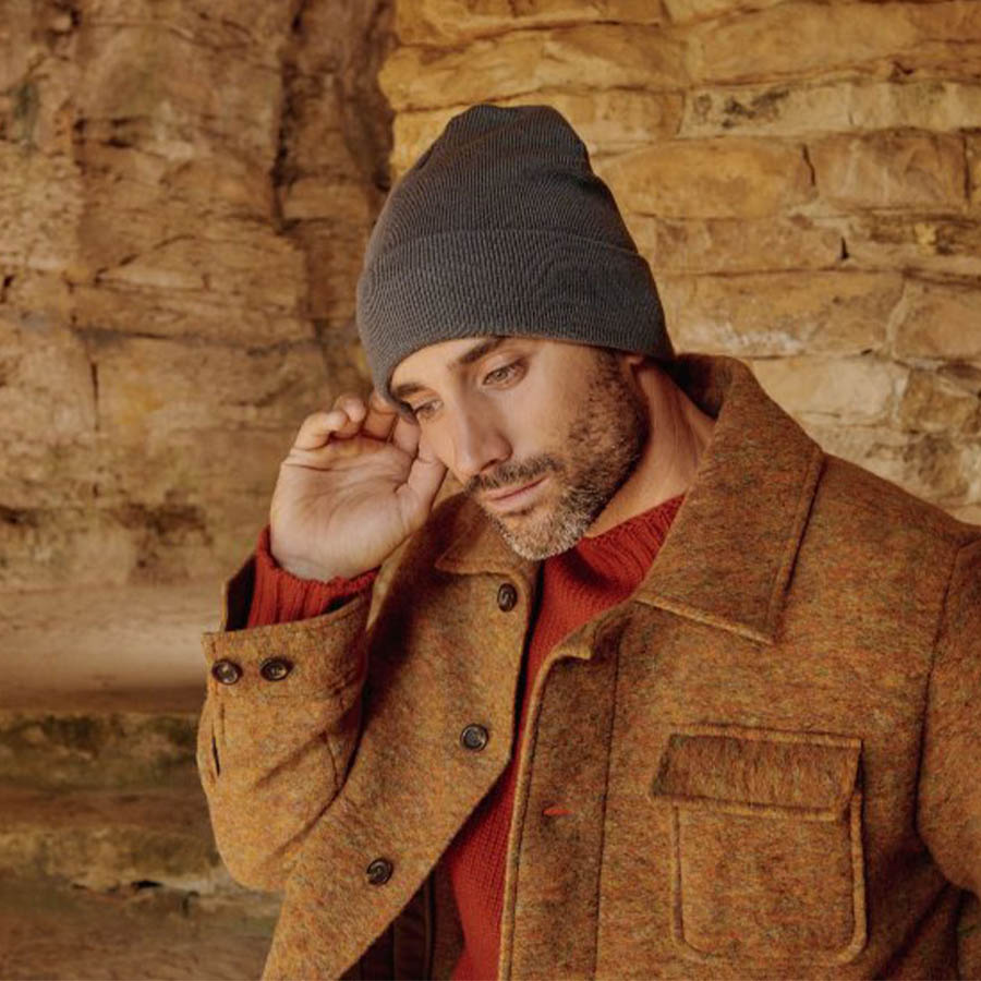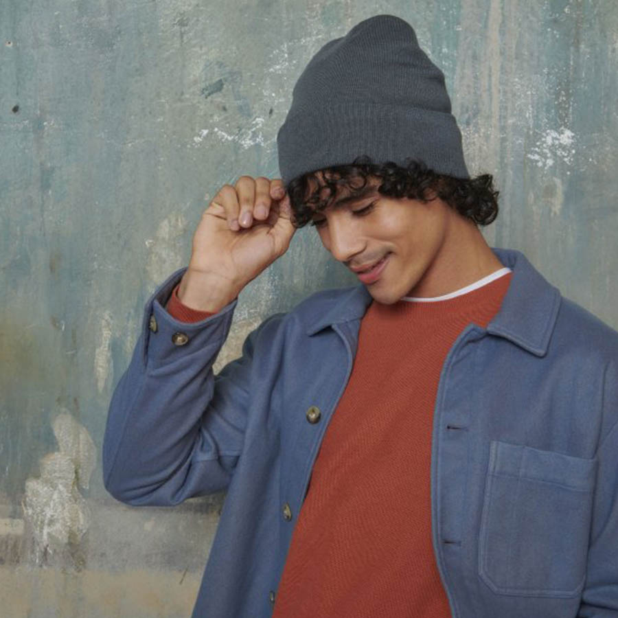 Вязанная узкой резинкой шапка-бини с отворотом из переработанного полиэстера поможет сохранить тепло в холодную погоду и защитит от ветра.