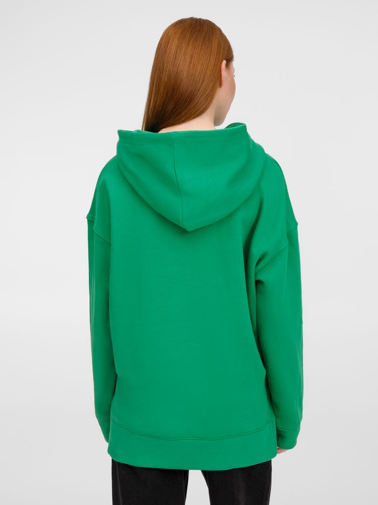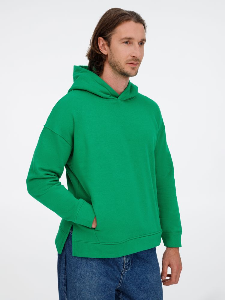 Худи унисекс оверсайз со спущенным плечом и внутренним карманом-кенгуру.