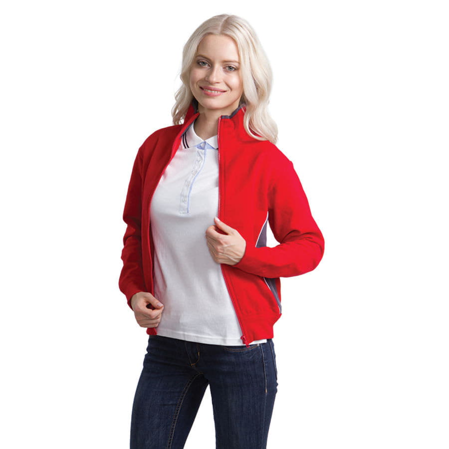 Женская толстовка на молнии изготовлена в Италии. Яркие контрастные цвета по боковым швам и воротнику придают толстовке стиль "Fashion". Парная модель - мужская толстовка "Cagliari " арт. JRC9896.