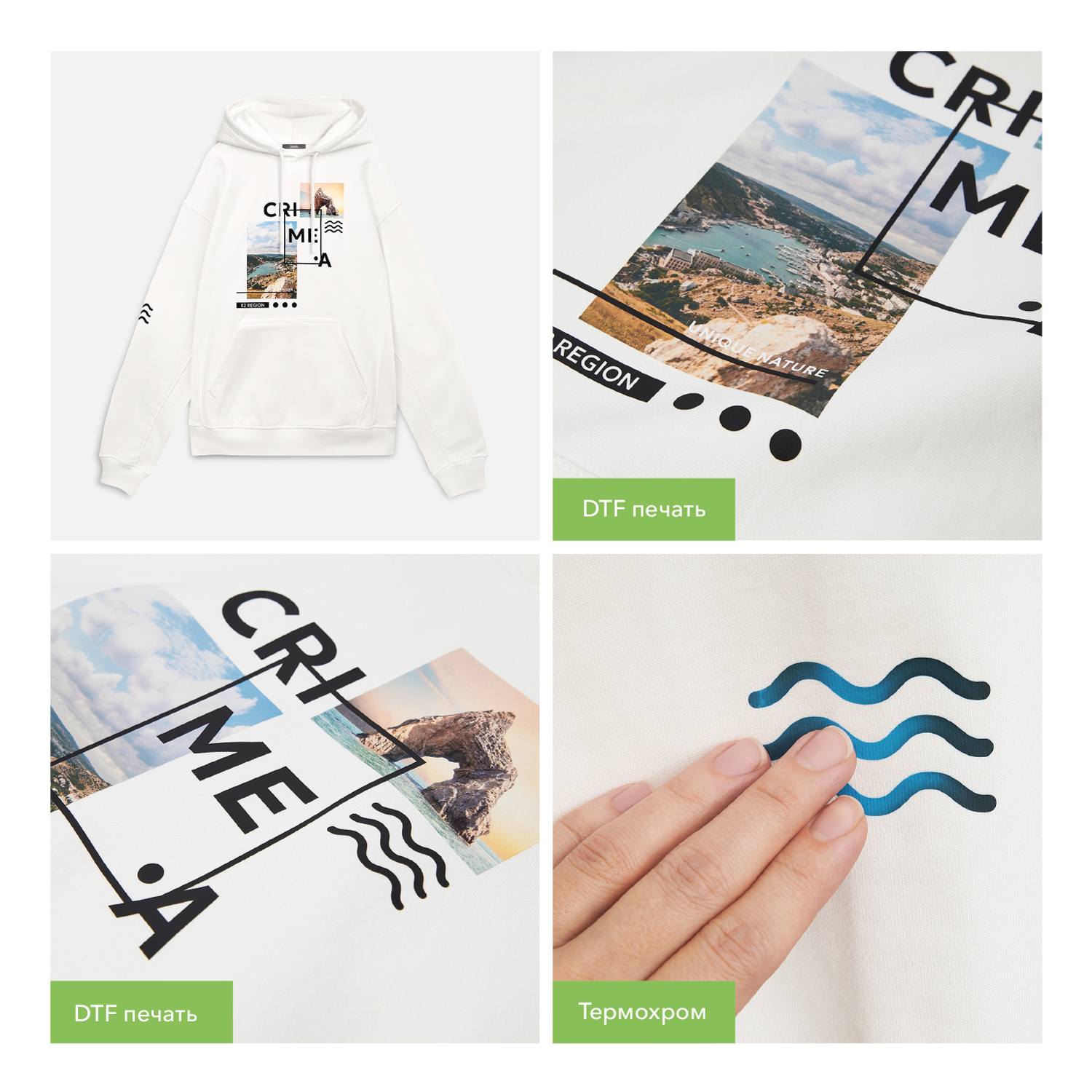 Модель выполнена из хлопкового футера плотностью 420 г/м (без начёса). Плотная, но мягкая ткань хорошо держит форму и при этом приятна к телу. Использована пряжа compact penye — прочная, тактильно деликатная, высокого качества.