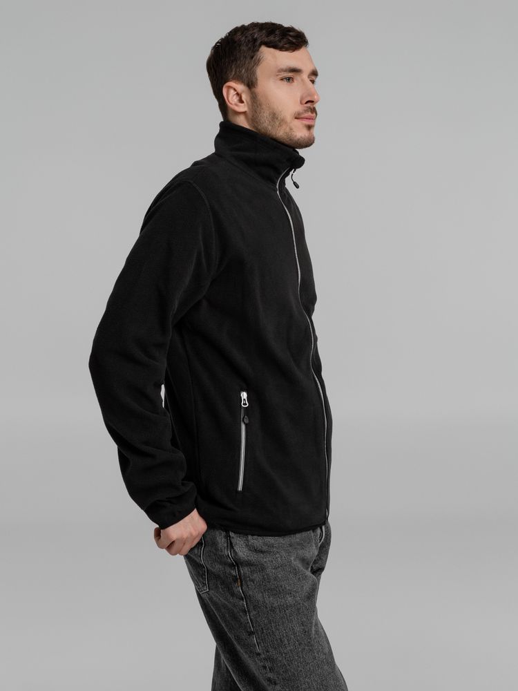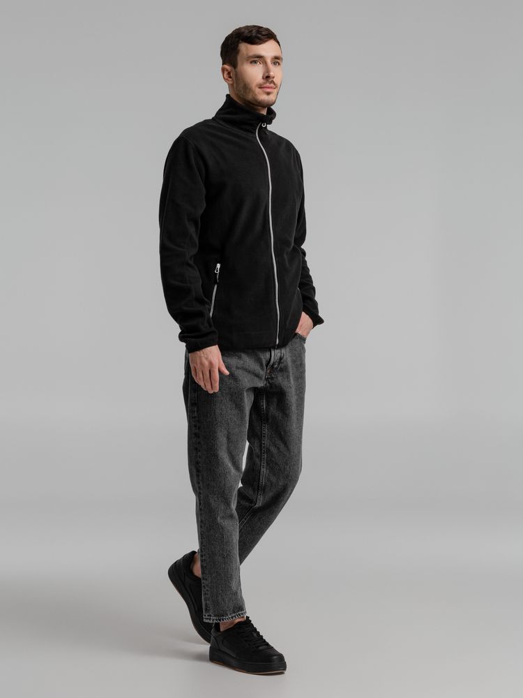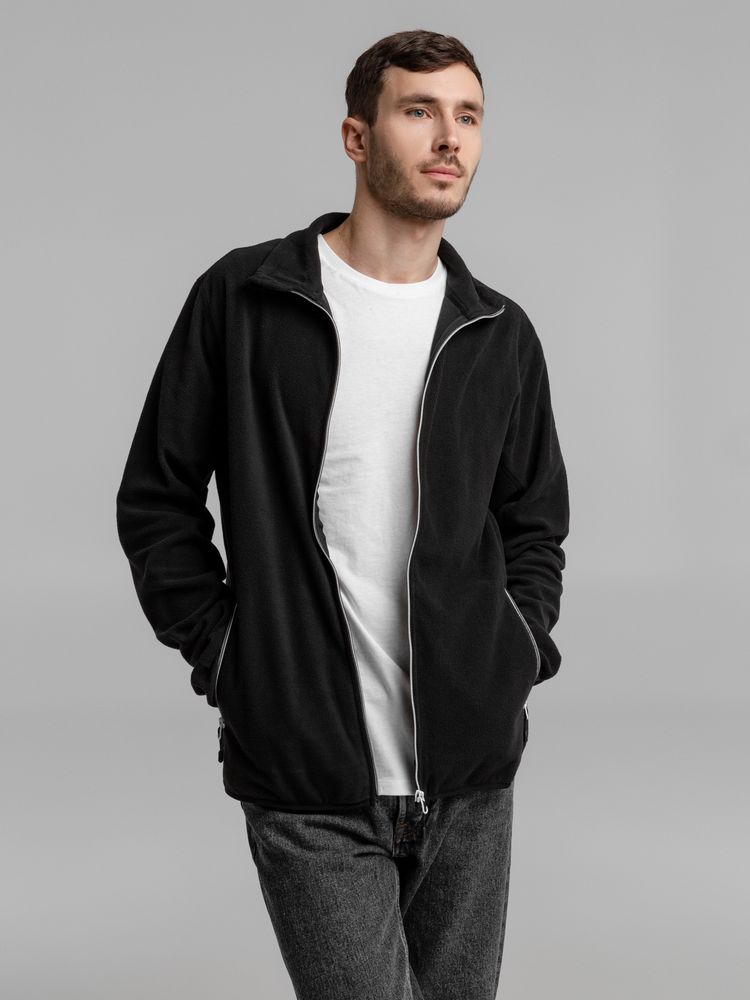 Толстовка из микрофлиса. Передние карманы на молнии, манжеты и низ куртки на тонкой резинке, застежка-молния контрастного цвета.