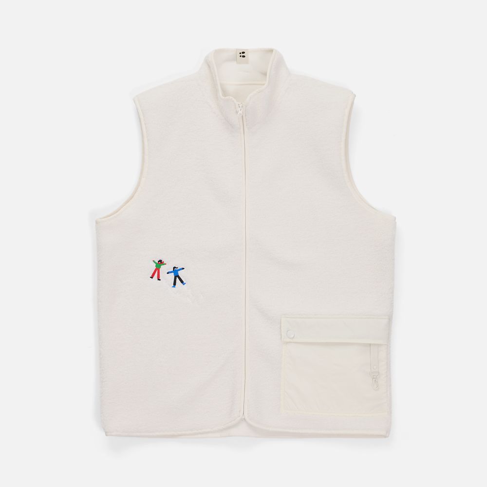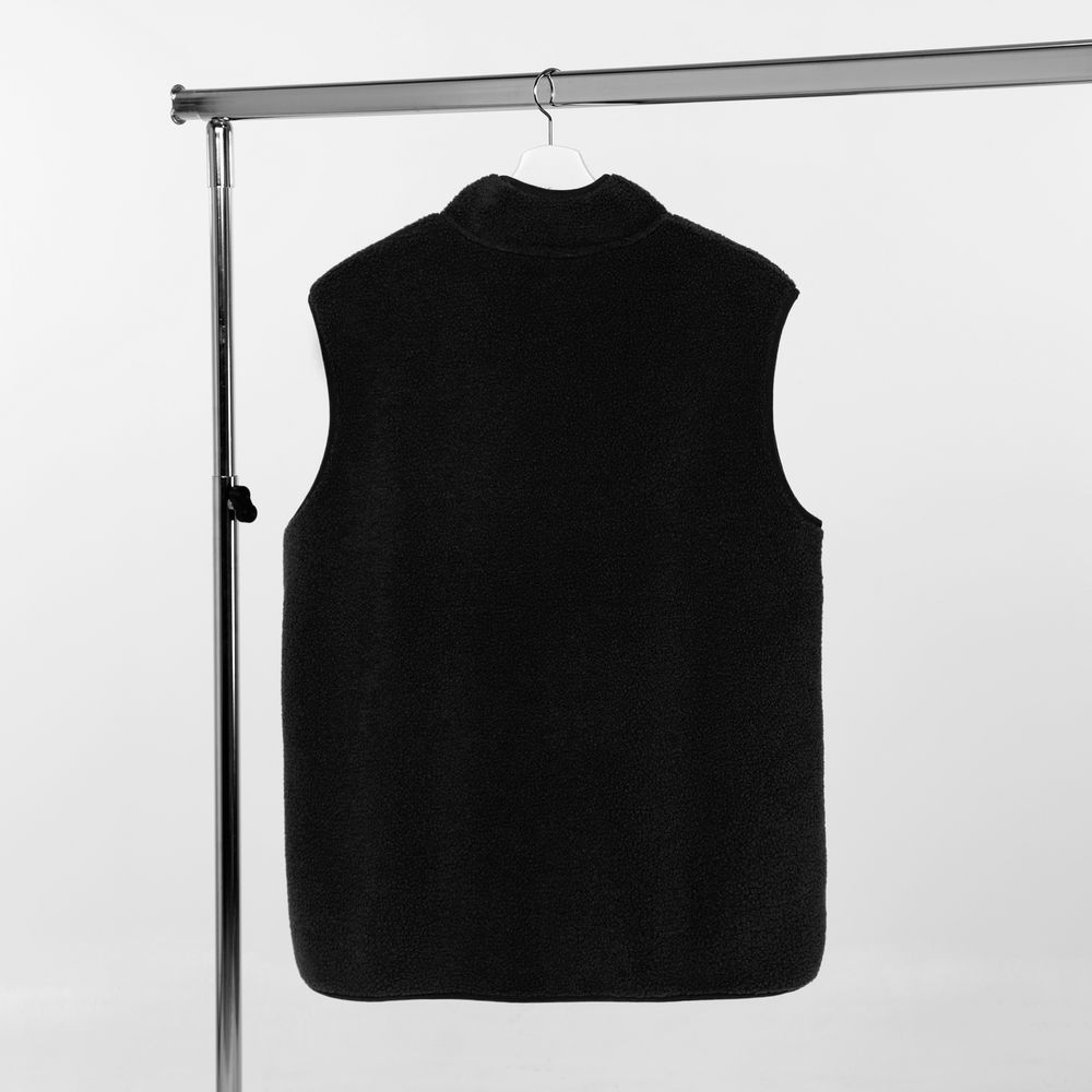 Жилет на молнии из современного двухслойного материала — модный искусственный мех снаружи и уютный флис внутри. Накладной карман из гладкого нейлона создает заметный визуальный контраст и делает жилет Oblako по-настоящему стильным предметом гардероба.