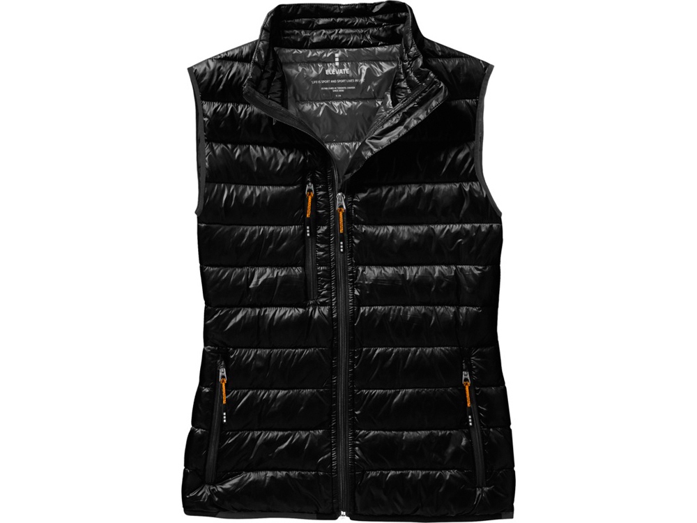 Женская пуховая жилетка Fairview. Стандартный покрой. Ткань не пропускает пух. Карманы для рук и нагрудный на молнии. Внутренний противоветровой клапан и защита подбородка. Эластичная обшивка внизу и на проймах. Ткань дышащая, ветронепроницаемая и влагоотталкивающая. Отражающий лого сзади. Ремешки на собачку (второй комплект в цвете антрацит). Жилет - версия победителя премии Reddot, куртки Scotia. Ткань из 100% нейлона с матовым и блестящим водоотталкивающим покрытием, 20D. 80% пух и 20% перо.