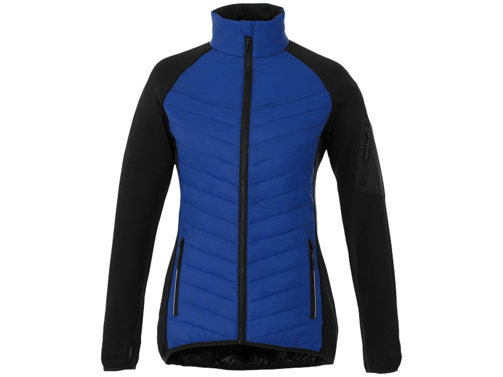 Женская утепленная куртка Banff. Внутренний противоветровой клапан и защита подбородка. Внутренний выход для медиапроводов. Удлиненная задняя часть изделия. Швы моделирующие фигуру и приталенный крой (женская модель).Манжеты-резинки контрастного цвета. Отделка контрастной тканью. Молния с контрастной лентой. Молния легкого скольжения. Петелька-вешалка. Комфортный ярлык-трансфер на изделии. 100% нейлоновая тканая матовая отделка 380T, водоотталкивающая и пухонепроницаемая ткань. Контрастная ткань: 94% полиэстер, 6% эластан с водоотталкивающей поверхностью. 38 г/м².