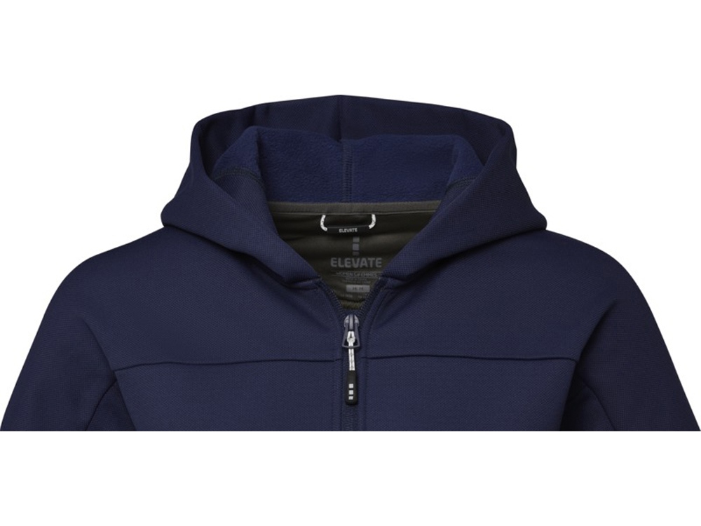 По центру спереди расположена обратная застежка-молния. Карманы спереди. Внутренняя сторона покрыта ворсом. Петля для подвешивания с фирменной символикой. Горловина из атласа. Внутреннее выходное отверстие для медиа с направляющей для шнура. Полумесяц. Главный лейбл нанесен методом термоприклеивания, удобным для размещения рисунков на ткани.
