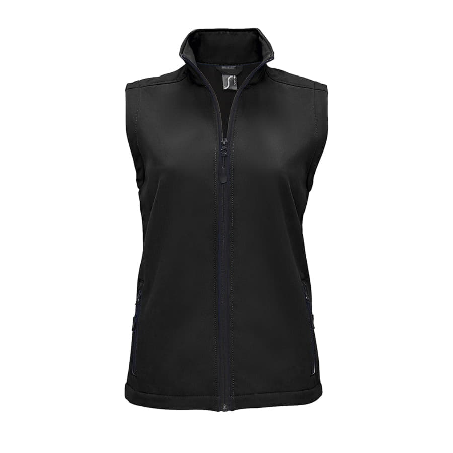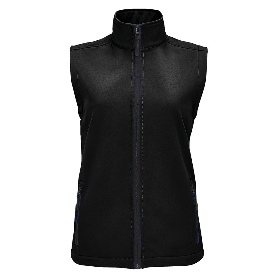 Женский жилет из материала софтшелл с водоотталкивающими свойствами (вода скатывается c поверхности ткани). Флис с внутренней стороны изделия сохраняет тепло. Два кармана на молнии с подкладкой "сетка" для большей вентилируемости.