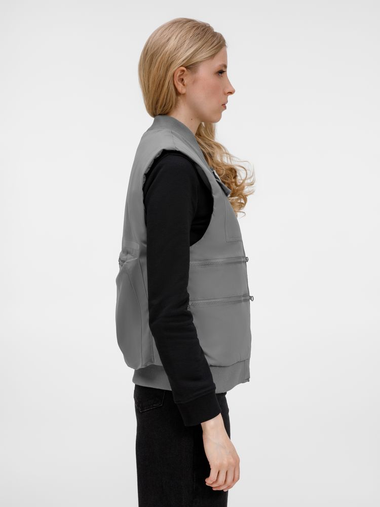 - 8 функциональных карманов, из них на передней части: 1 карман с клапаном для документов/рации, 1 карман для ручки, 5 вместительных на молнии, а так же 1 карман под планшет на молнии на спинке жилета