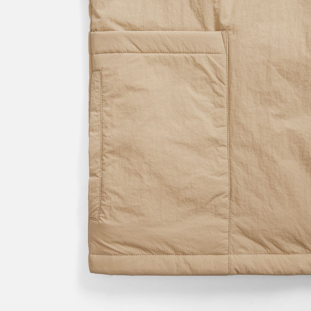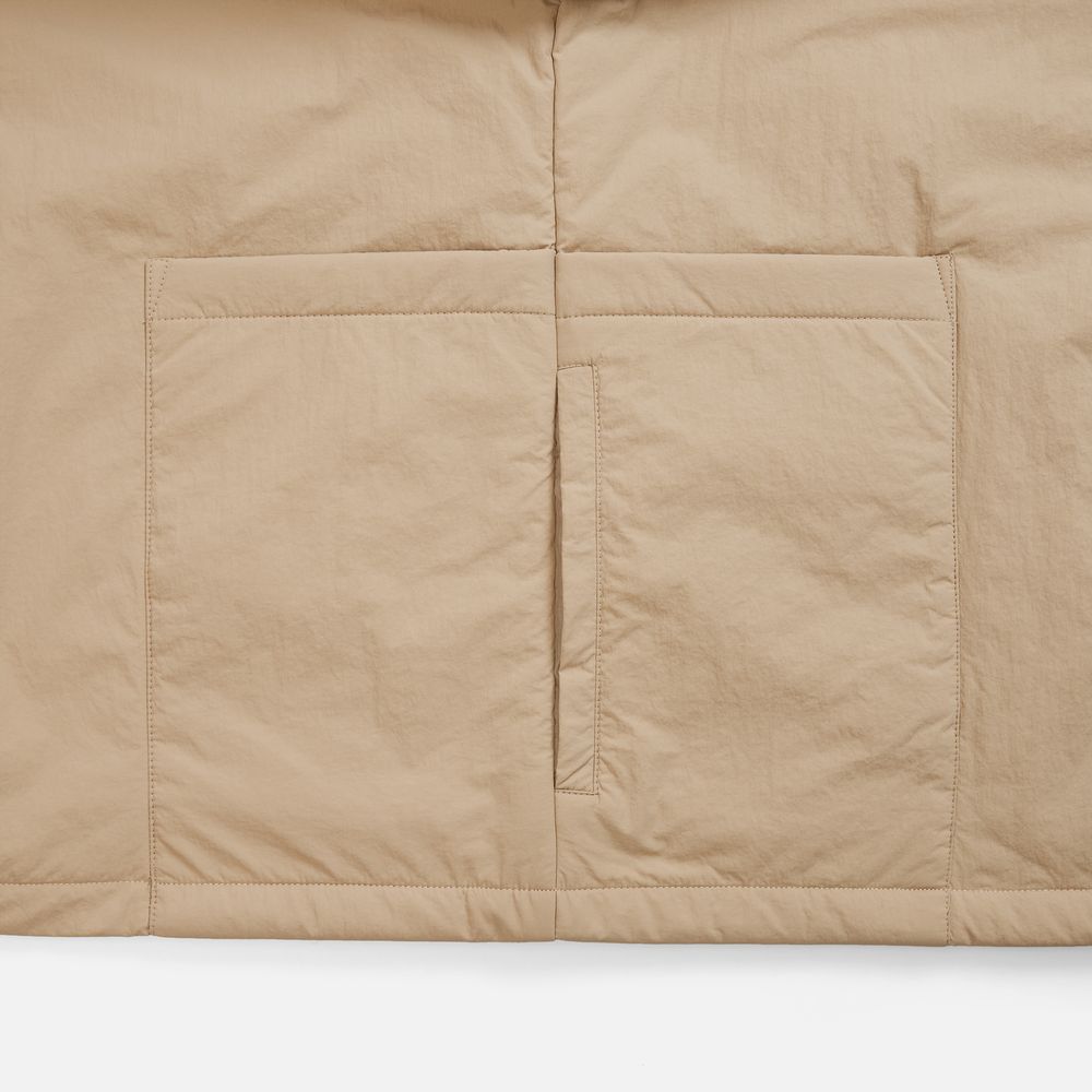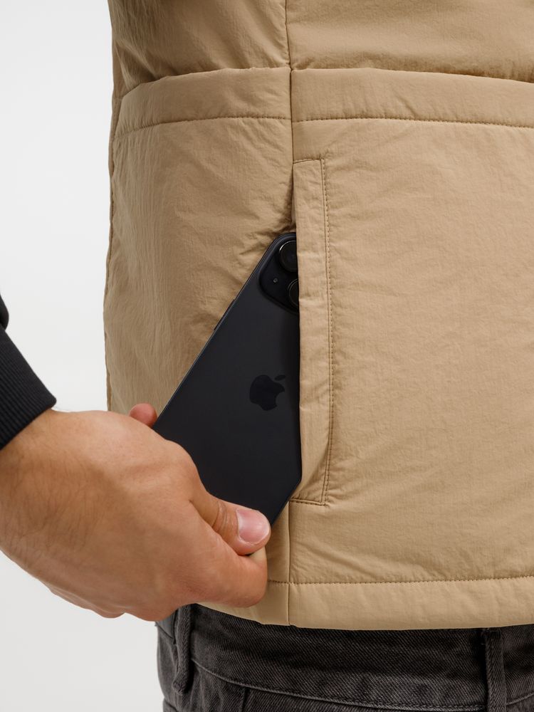 Коллекция верхней одежды, что легко согревает и обволакивает, как теплый и ласковый ветер, и в то же время ветра совсем не боится. Жилет из нейлона с текстурой мятого шелка создает приятный микроклимат, в котором воздушность сочетается с комфортной терморегуляцией.