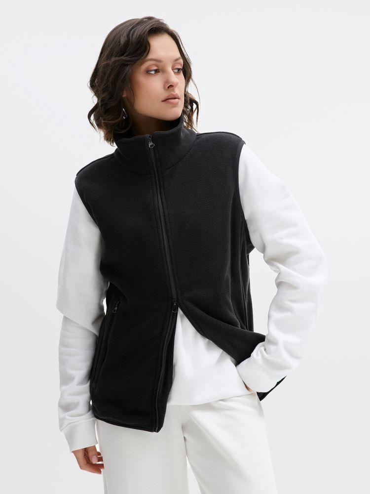 - Низ изделия и пройма жилета обработаны эластичной лентой в тон основного изделия