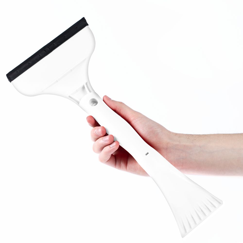 Скребок Water Low состоит из двух половинок: скребка с усиленной кромкой и зубьями-ледорубами и водосгона с упругой резиновой накладкой. Для удобства части скребка можно разъединить.