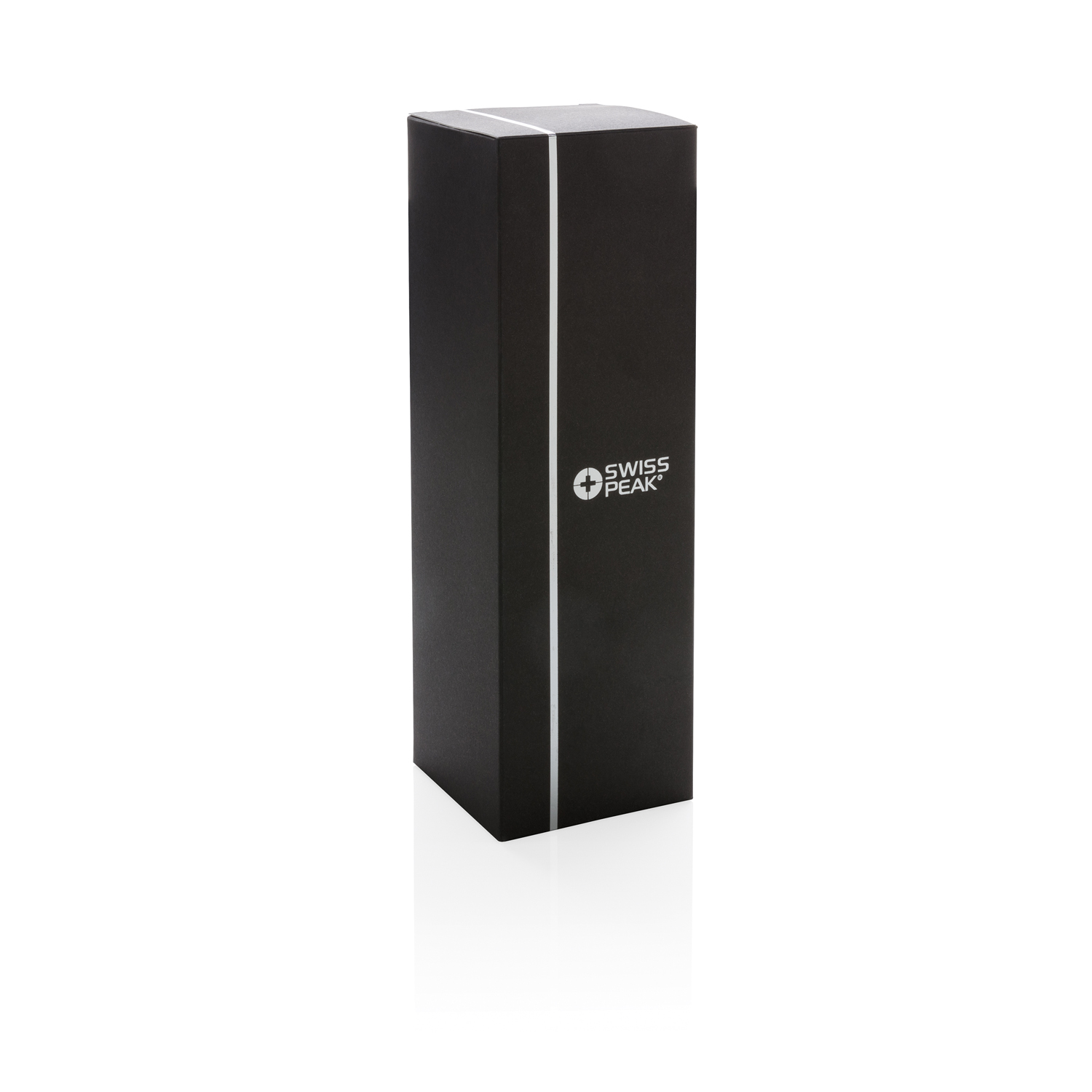 Коллекция Swiss Peak Elite с вакуумной изоляцией и двойными стенками из нержавеющей стали 18/8. Долговечное внешнее покрытие черного цвета, которое не облезет и не потрескается. Внутренние стенки покрыты медью, что обеспечивает максимальную проводимость для того, чтобы напитки сохраняли тепло до 8 часов или оставались холодными до 24 часов! Ручная мойка, защита от протекания. Объем 500мл.