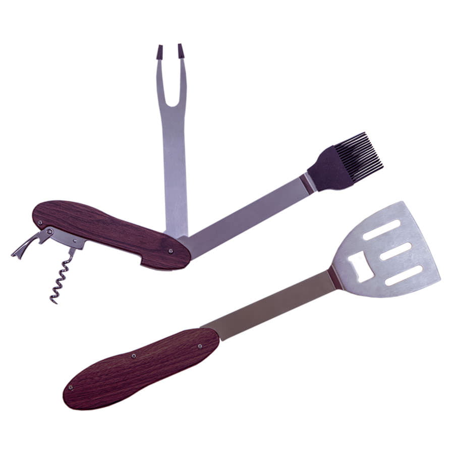 Барбекю сет скреплен магнитами в основании ручки, разделив их Вы получите два полноценных инструмента для приготовления блюд.